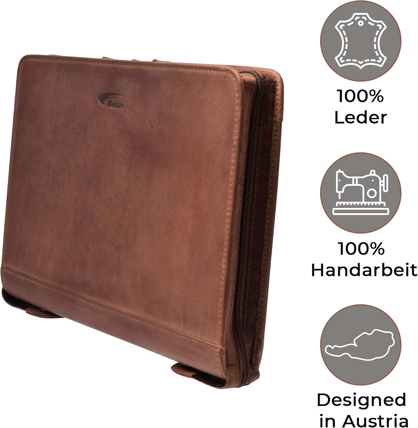 • Echt Leder Konferenzmappe von Menzo mit Reissverschluss für DIN A4-Format als perfekter Organizer.