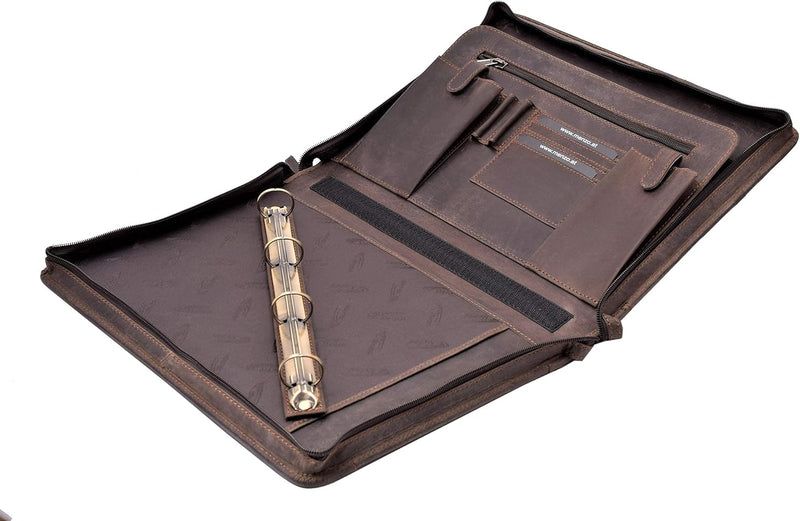 - Echt Leder Konferenzmappe von Menzo mit Reissverschluss für DIN A4-Format als perfekter Organizer.