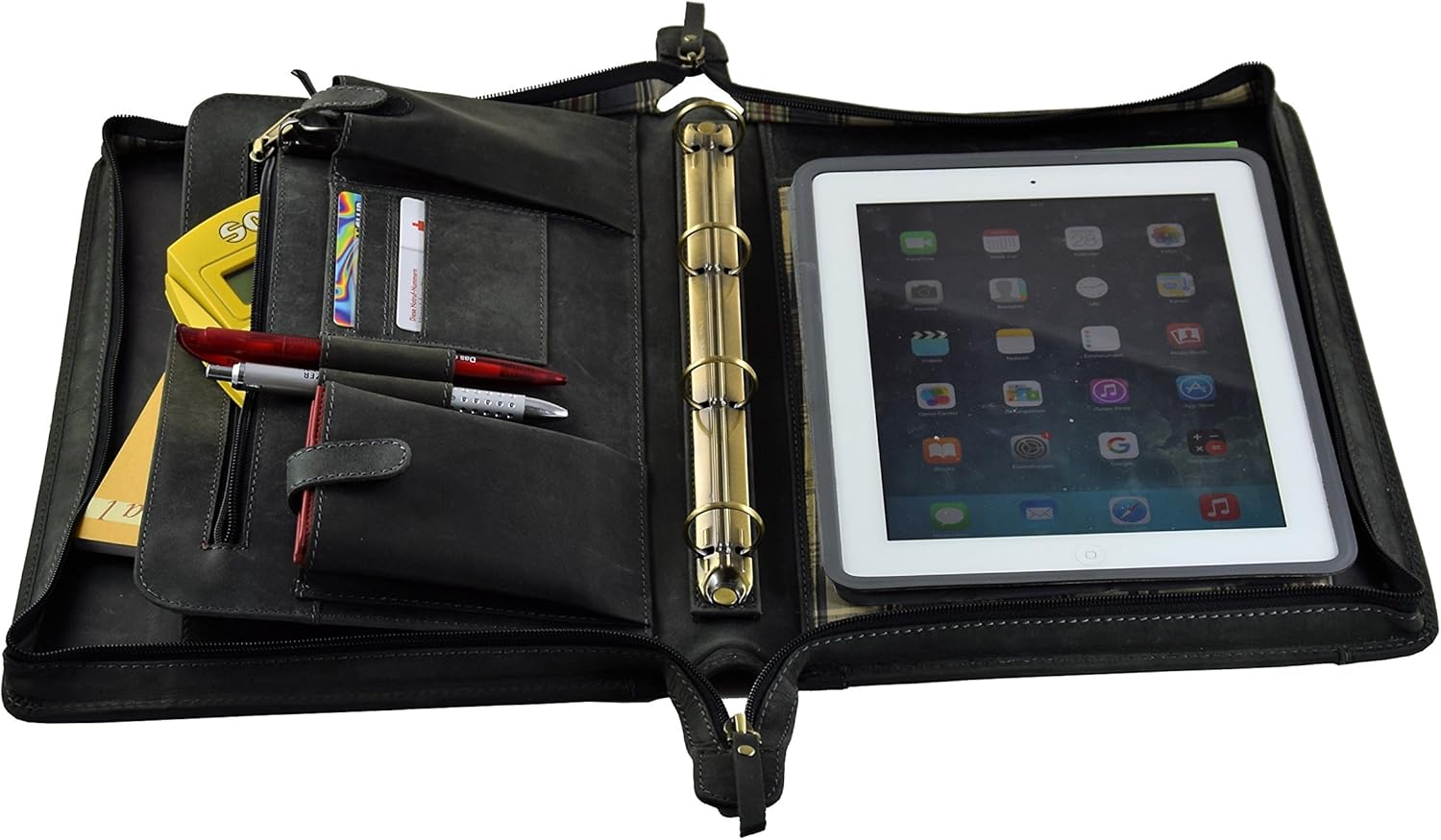 - Clever gestaltete Ringbuchmappe aus echten Büffelleder bietet Platz für Visitenkarten, Stifte, Tablet Unterlagen, Smartphone, Taschenrechner und vieles mehr.