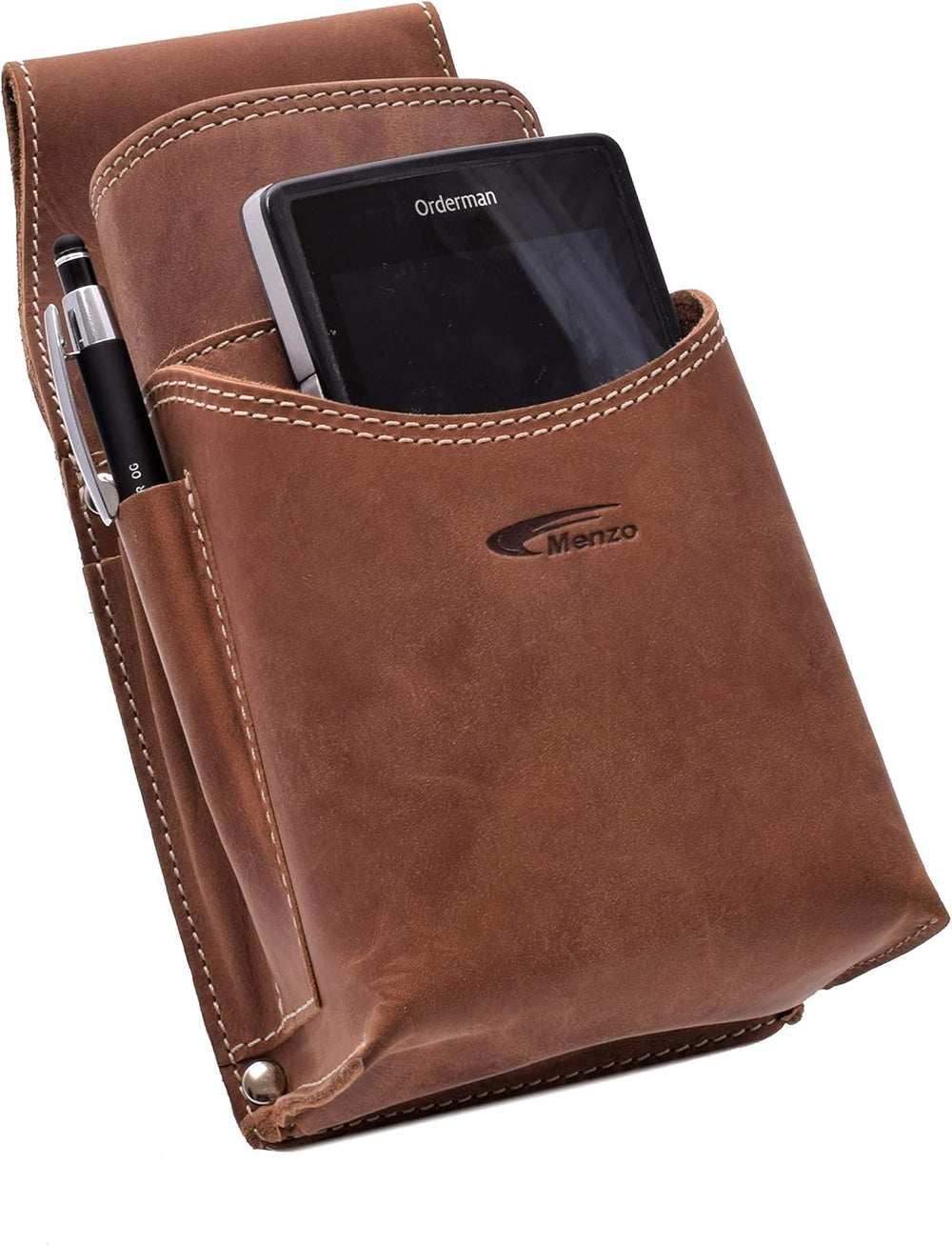 PRODUKTBESCHREIBUNGEN MENZO-Lederprodukte stehen für hochwertige Verarbeitung aus edlen Materialien. Zur Herstellung unserer Produkte verwenden wir ausschliesslich „Chrom IV freies Rohleder“ der 1. Selektion (frei von Narben und Stichen),Marken-Druckknöpfe, die neuesten Maschinen und die qualifiziertesten Arbeiter. DIES ALLES MACHT DIE QUALITÄT VON MENZO AUS! Produktbeschreibung Marke: MENZO Abmessung Kellnerbörse: (L x B x T) 17,6 cm x 10,5 cm x 5,3 cm) Abmessung Halfter:(L x B x T): 13 cm x 25,2 cm x 8 cm Material: 100% Vintage Büffelleder Innenausstattung Kellnerbörse - 7 grosse Innenfächer für Geldscheine - 1 grosses Münzfach - 3 extra Scheinfächer mit Sicherheitslasche - 1 Steckfach aussen für Block Ausstattung Halfter - 1 Steckfach aussen - Halterungen für Kugelschreiber bzw. Feuerzeug - Innenfach doppelt verstärkt 12 MONATE GARANTIE!