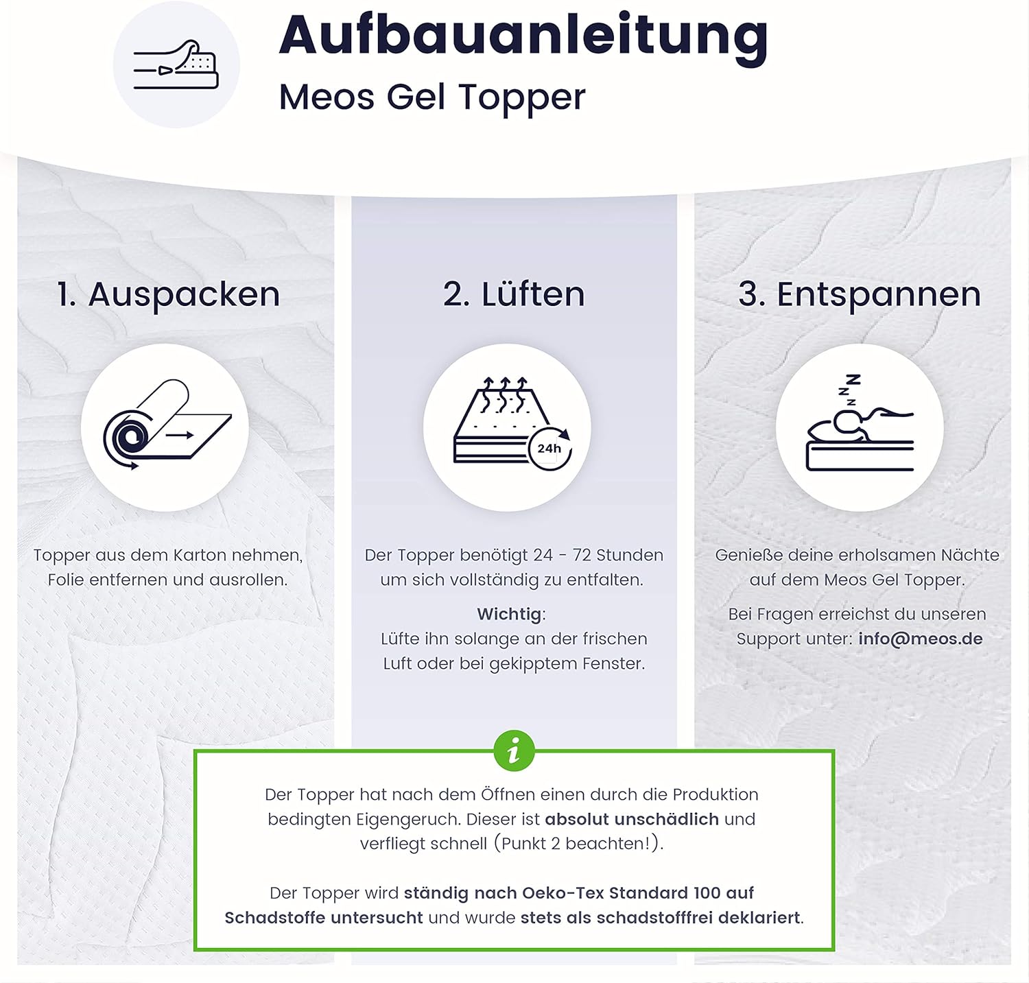 - ➤ 100% MADE IN GERMANY | Alle sorgfältig ausgewählten Materialien des hochwertigen Topper werden in Deutschland hergestellt & sind schadstoffgeprüft (Standard 100). Garantierte Premium Qualität. Wir verkaufen keine bedenklichen Schäume aus China oder minderwertigen Bezüge aus Osteuropa!