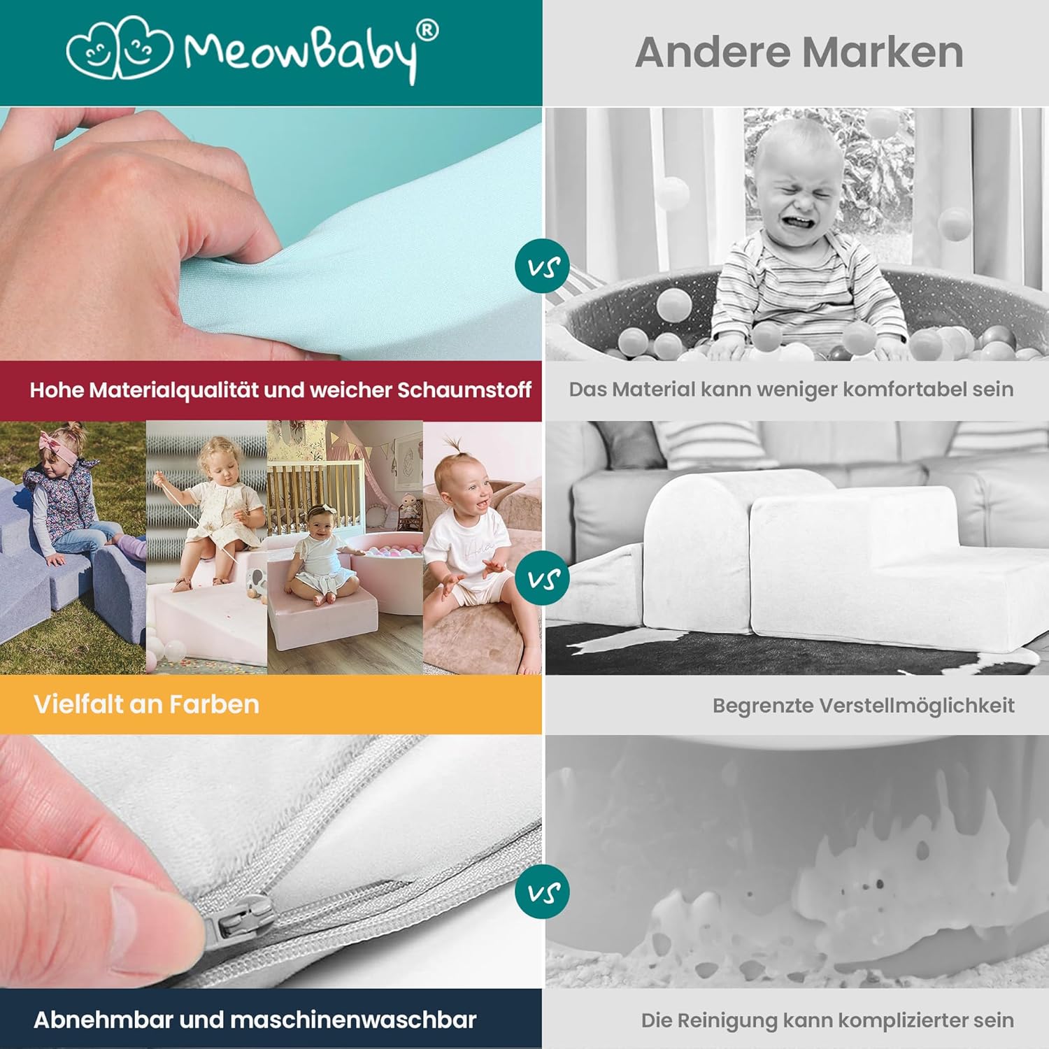 - Leicht & Reinigen - Schaumstoff Bausteine können leicht abgewischt werden und sind damit eine pflegeleichte Ergänzung für jedes Spielzimmer.