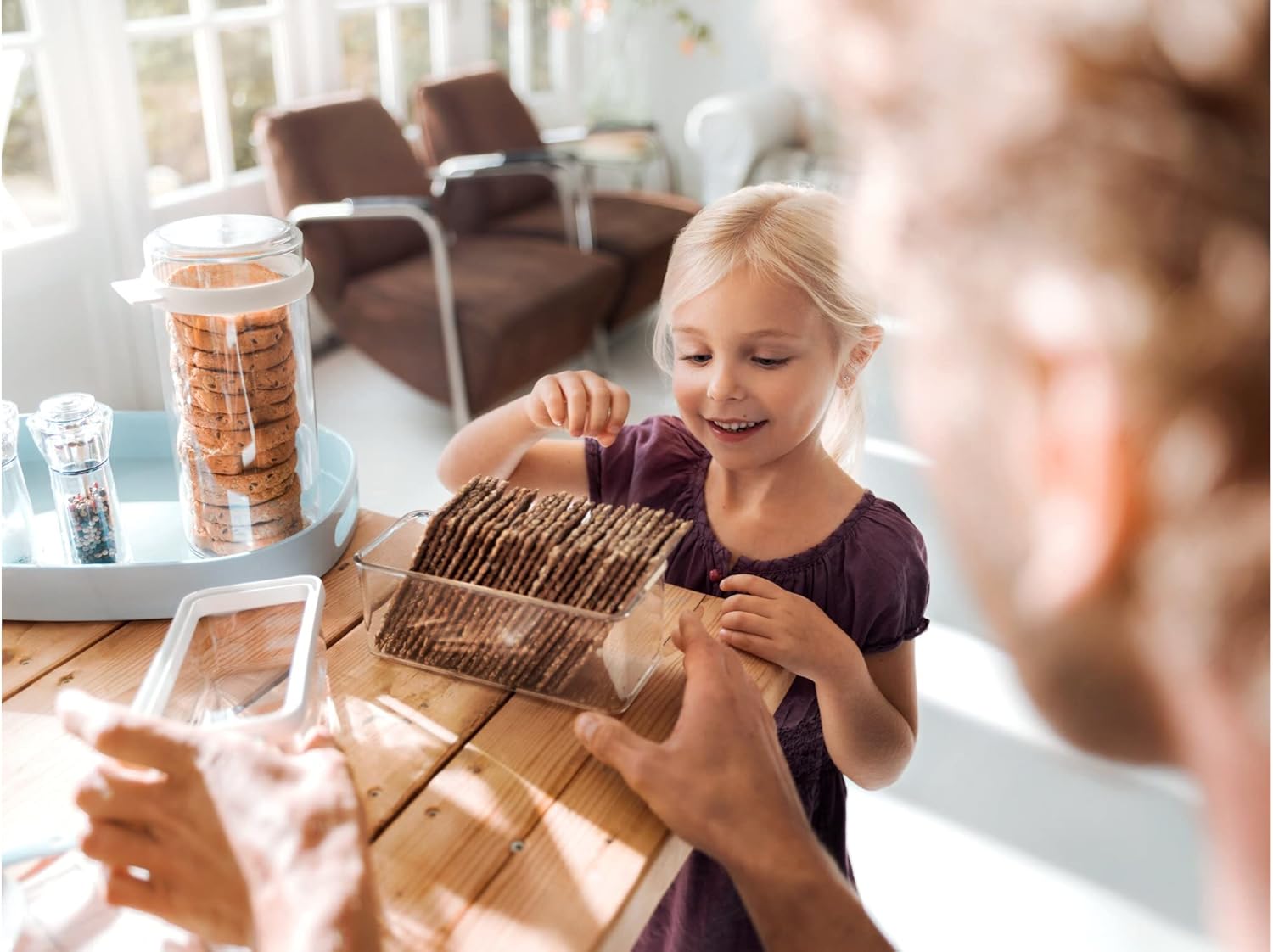- DESIGN: Der Aufbewahrungsbehälter ist so konzipiert, dass eine ganze Packung Knäckebrot hineinpasst. Der Behälter ist transparent, so dass Sie den Inhalt des Behälters immer sehen können