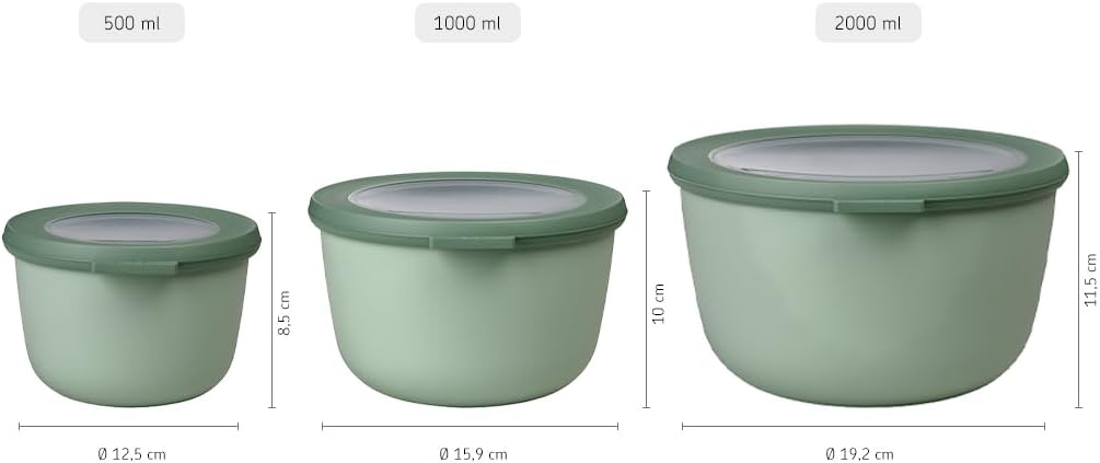 - FASSUNGSVERMÖGEN & ABMESSUNGEN: Das 3-teilige Küchenset besteht aus drei Schüsseln, mit dem Fassungsvermögen von 500 ml, 1000 ml und 2000 ml. So können Sie verschiedene Dinge in den Boxen aufbewahren