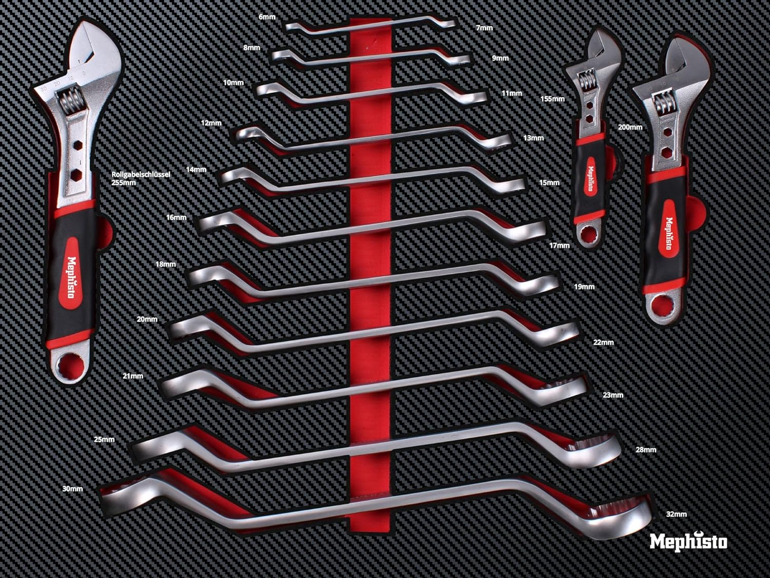 Mephisto Rollgabelschlüssel, gekröpfte Doppelringschlüssel, verstellbarer Schraubenschlüssel (Englän