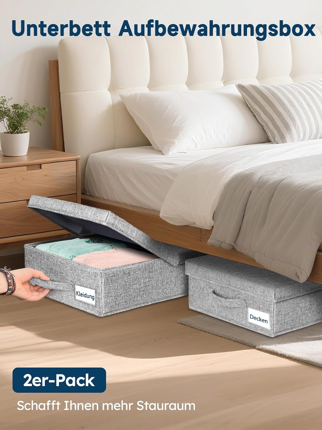 - Grosser & Flacher Stauraum – Mit 79×40×15 cm (2er Set) bietet diese Unterbett Aufbewahrungsbox reichlich Platz für Kleidung, Decken, Bettwäsche, Schuhe und mehr. Ideal für Schlafzimmer, Schränke, unter dem Bett oder Sofa – hält Ihr Zuhause