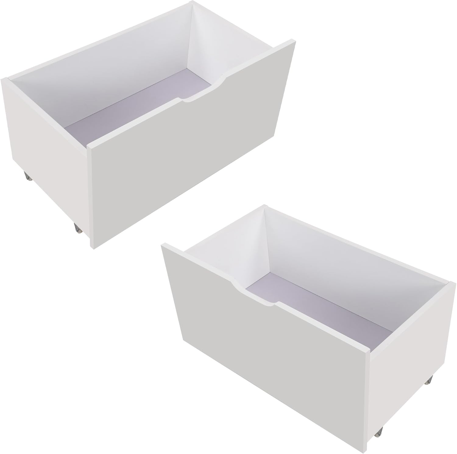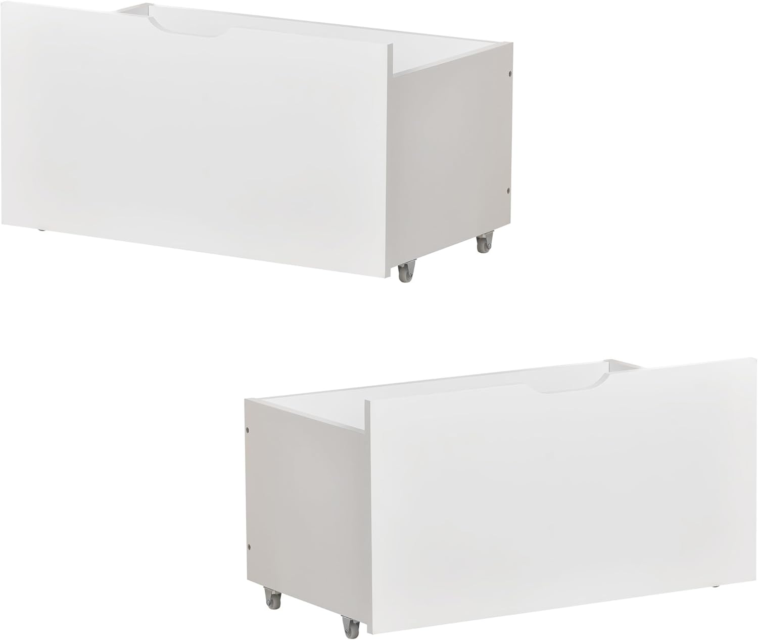 Merax 2 Schubladen für Kinderbett 90x200cm 90 x 190 cm, Schubladen aus Holz, mit 4 Rollen, Weiss 2 S