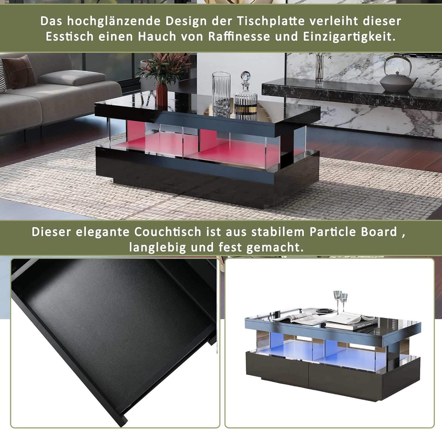 - ⭐ Gestalten Sie Ihr Wohnzimmer mit unserem hochwertigen Hochglanz-Kaffeetisch mit LED-Beleuchtung und Acrylplatte neu. Bringen Sie Stil und Eleganz in Ihr Zuhause und geniessen Sie das moderne Design. Bestellen Sie jetzt und machen Sie Ihren Wohnraum