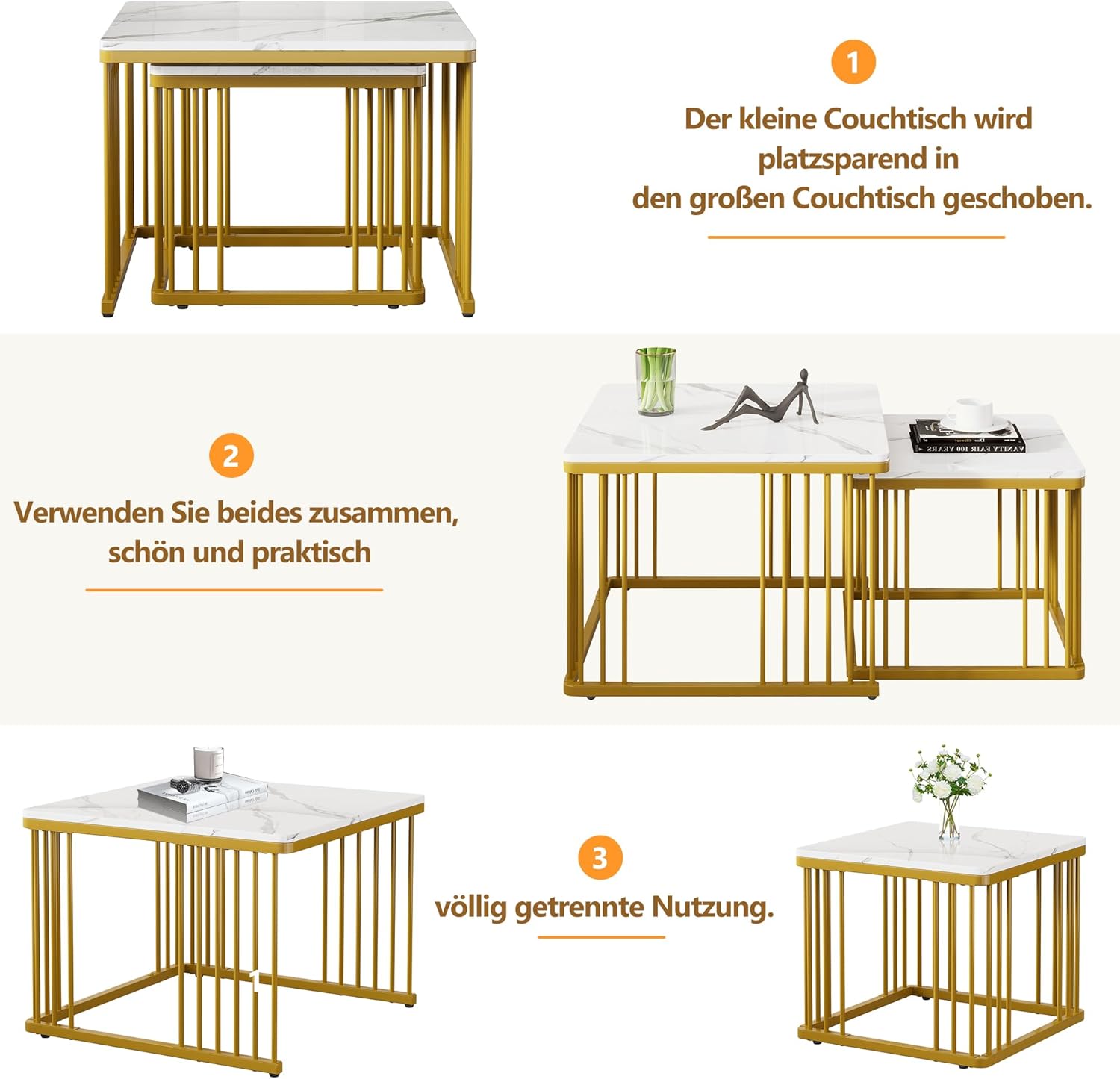 - ELEGANTES DESIGN: Hochglanz-Marmoroptik-Tischplatten verleihen Ihrem Wohnzimmer eine luxuriöse und moderne Note.