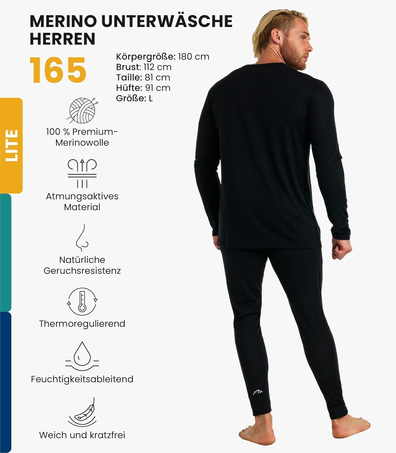 - Lightweight - Merinowolle Unterwäsche Herren ist erhältlich in: Lightweight = 165 g/m², Midweight = 250 g/m², Heavyweight = 320 g/m². Merino-Woll-Wandersocken ($21 Wert!) Das Paket enthält eine Merino Unterwäsche Herren Set aus Langarm Shirt und