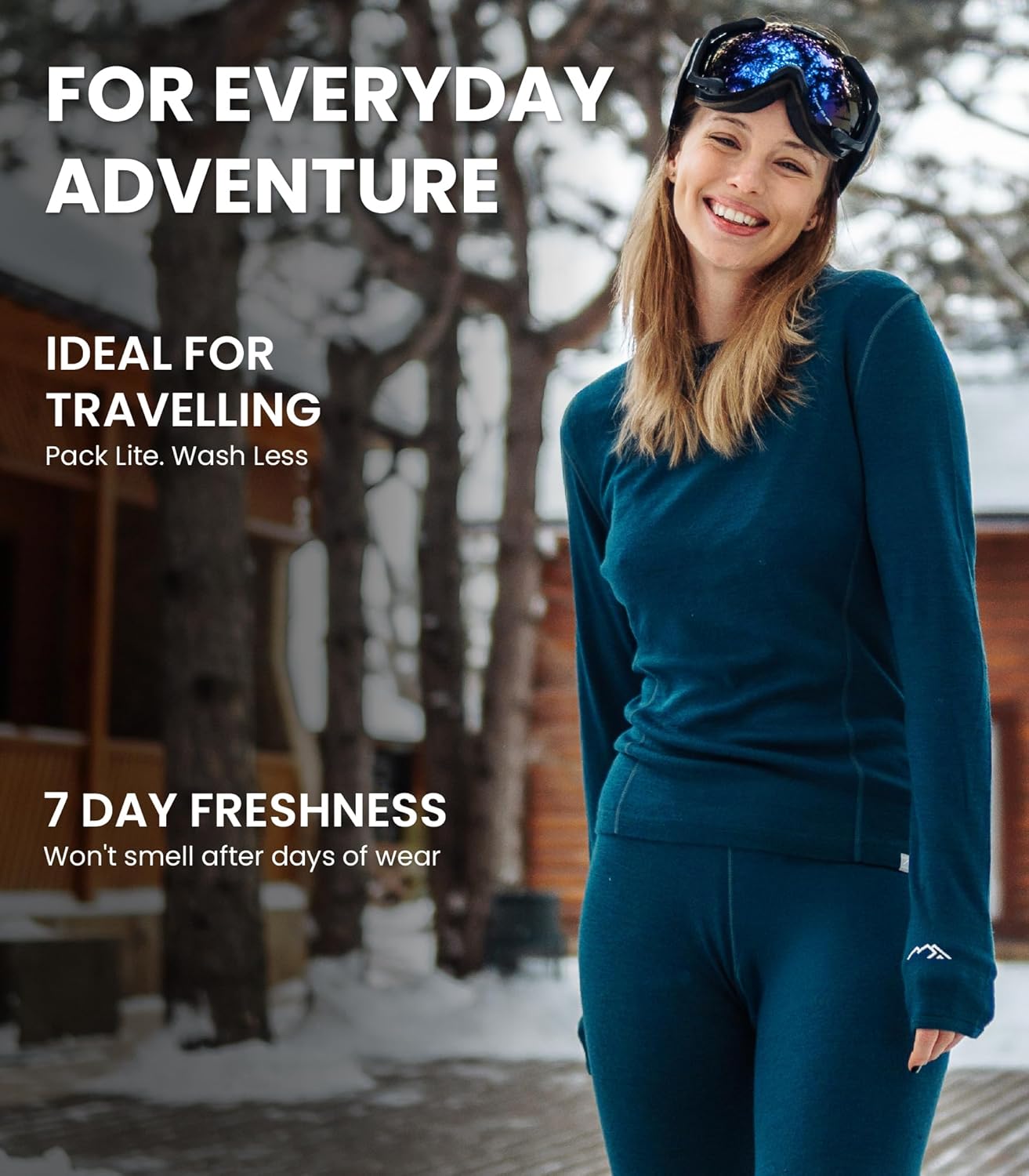- Super Soft & Komfortabel - 100% superfeine 19.5 Micron Funktionsunterwäsche Merinowolle für Frauen bieten den ganzen Tag lang Komfort und kein Jucken! Entwickelt für den täglichen Gebrauch, ohne Reibung, Überhitzung oder Knötchenbildung wie bei