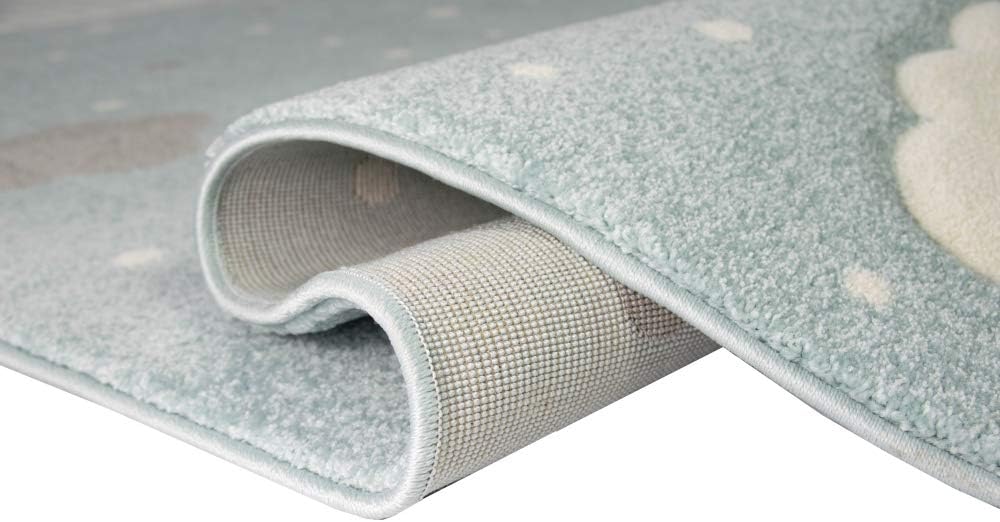Merinos Teppich für Kinder mit Wolken Spielteppich in Blau Grösse 120 cm Rund, 120 cm Rund