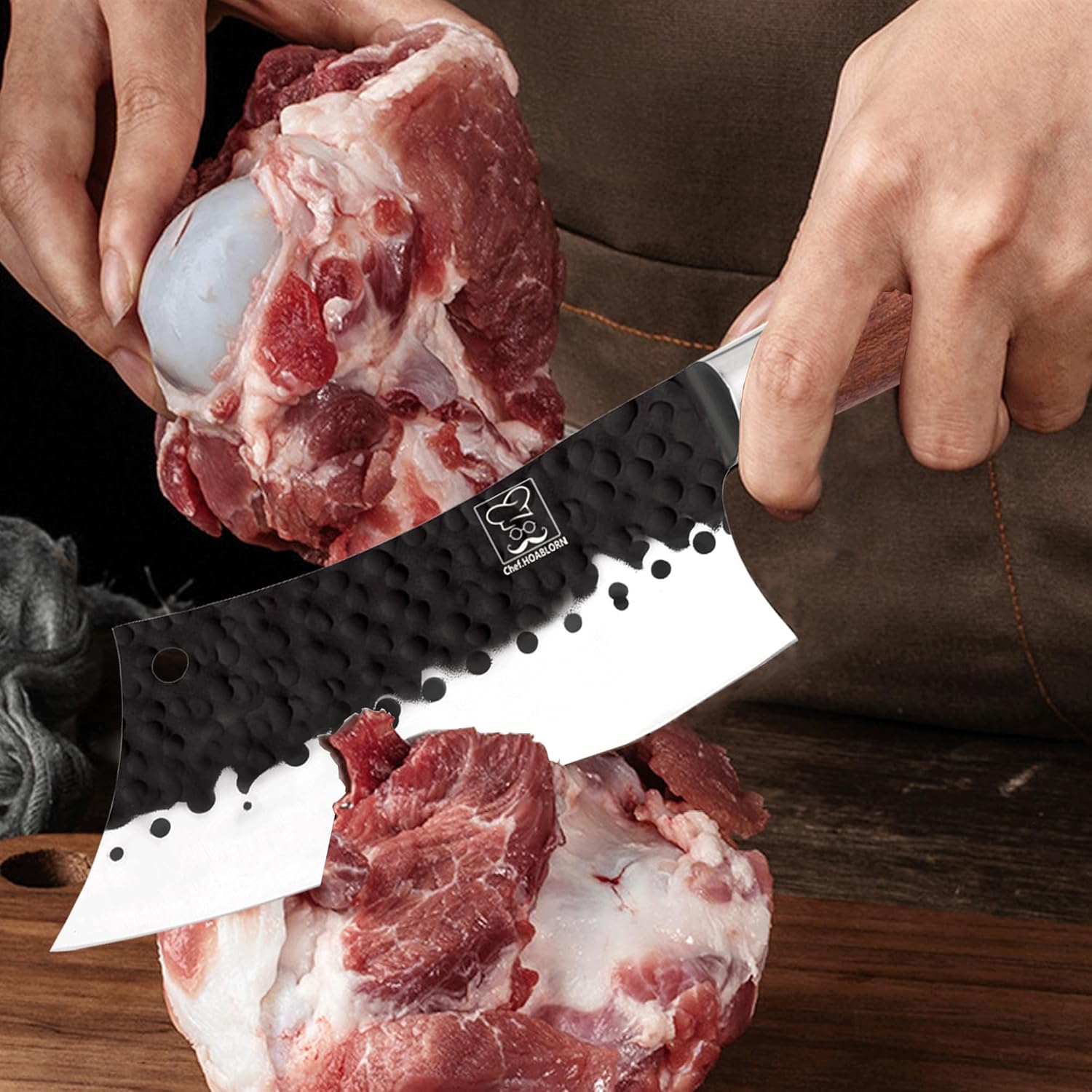 • ✔【Hacken und Ausbeinen】Wir haben auch besonders die Bedürfnisse beim Umgang mit Knochen berücksichtigt. Das 6,8" Ausbeinmesser und das 6,8" Hackmesser werden helfen. Mit dem Knochenhackmesser können Sie leicht Hühnerflügel, -schenkel, sowie