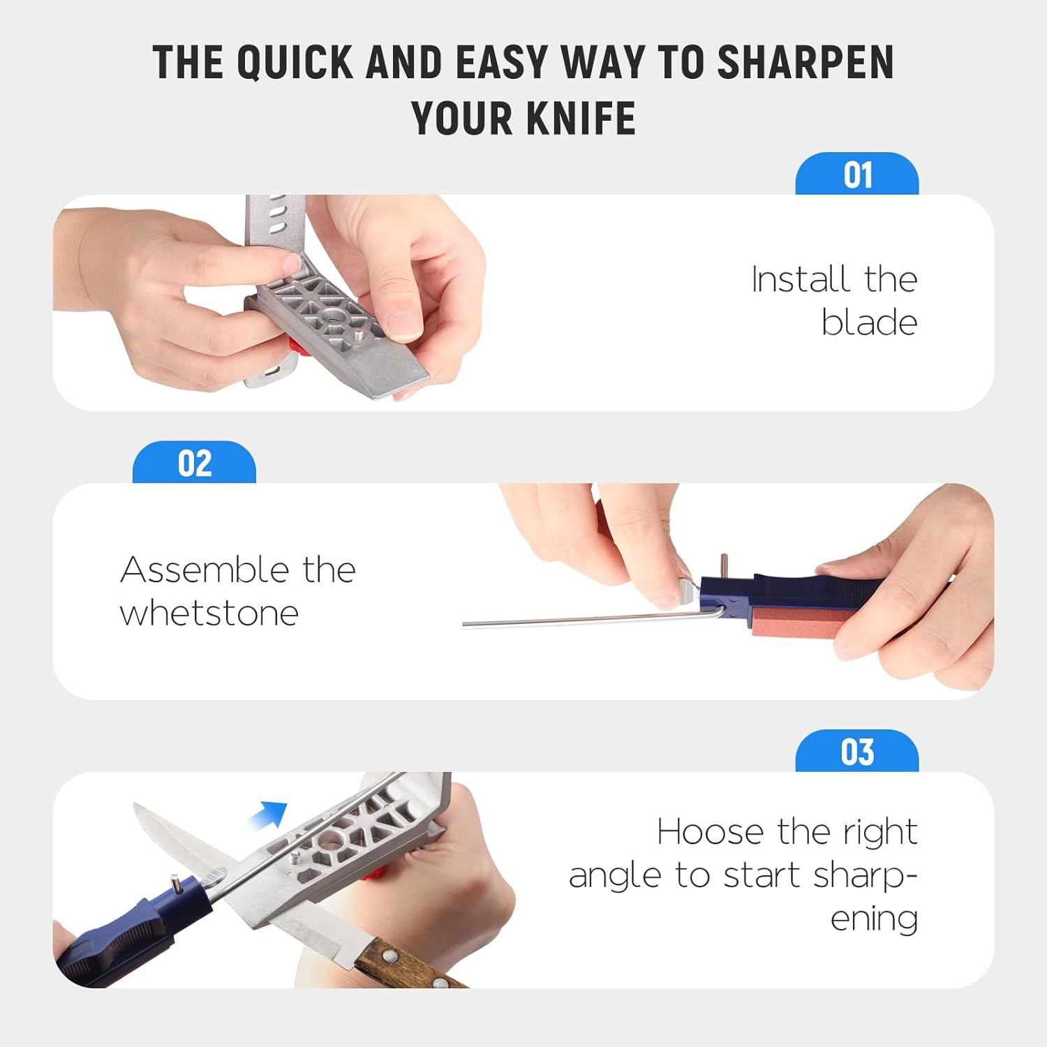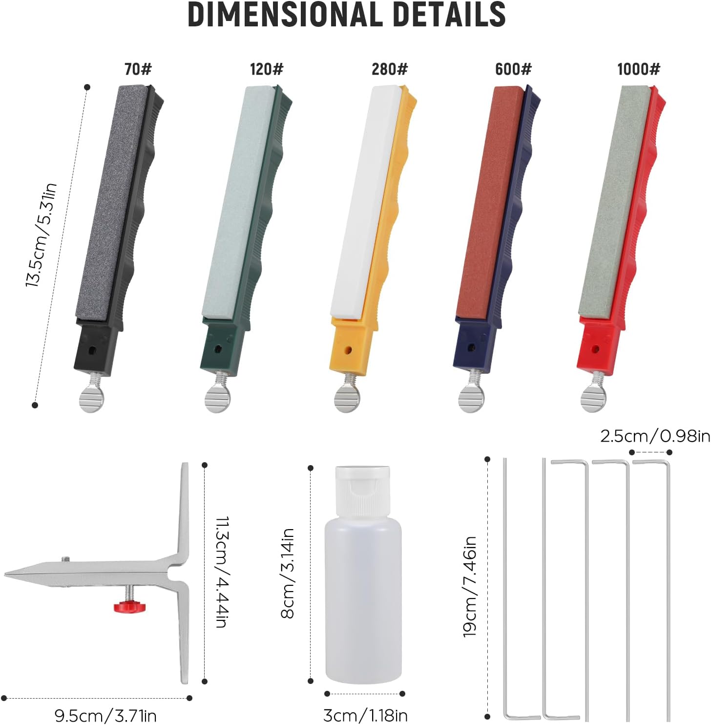 - Komplettes Set: Dieses Paket enthält einen Messerclip mit Winkelauswahl, Aufbewahrungsbox, Plastikflasche (Flüssigkeit nicht enthalten), Schrauben, Führungsstangen, Fingernutschleifer und eine Bedienungsanleitung. Ein komplettes Set für
