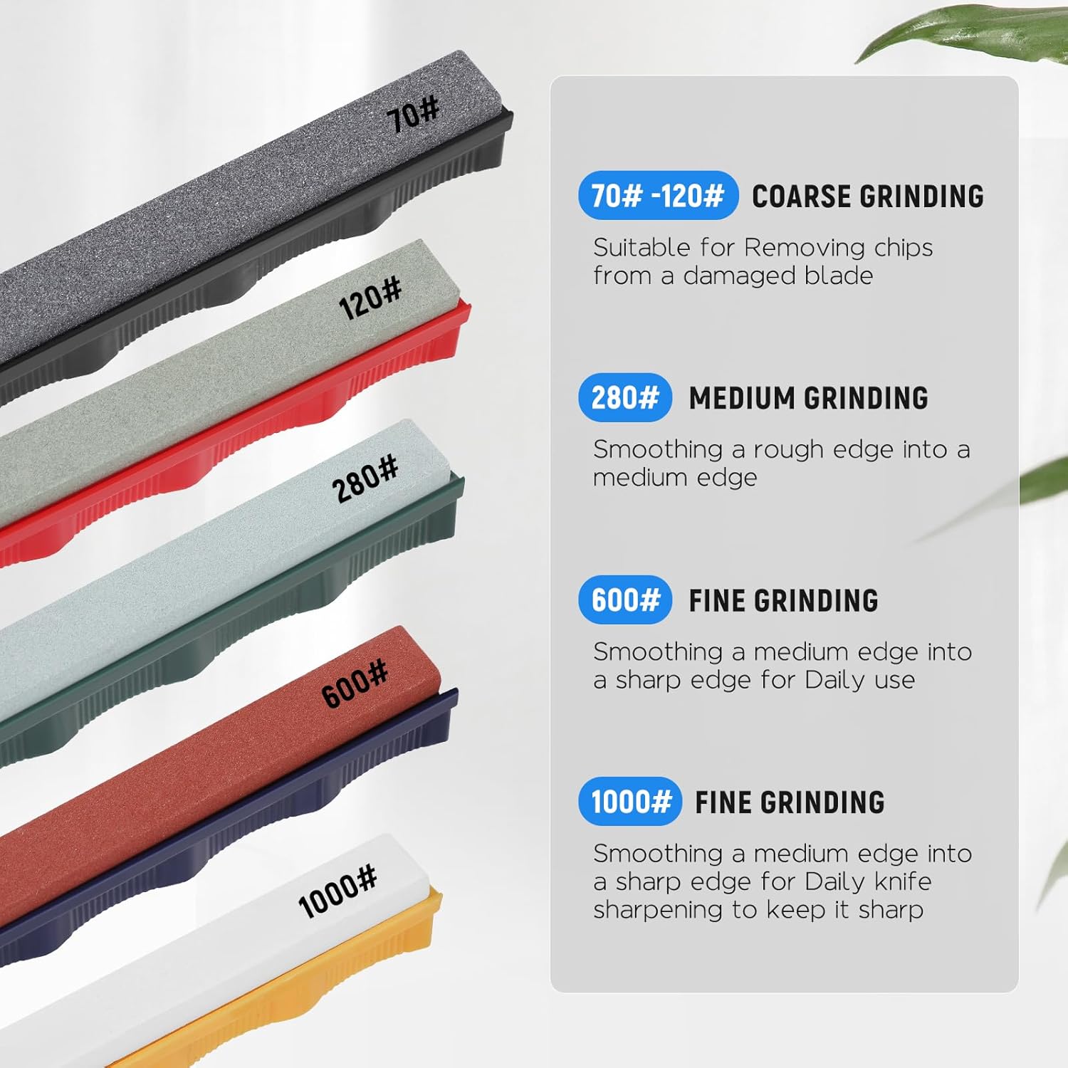 - Langlebiges Design: Das Messerschärfer-Kit verfügt über einen langlebigen und praktischen Eisenschleifer mit einem vielseitigen Design, wodurch es eine ideale Wahl zum Schärfen von Heim-, Küchen-, Hobby- oder Gartenmessern ist.
