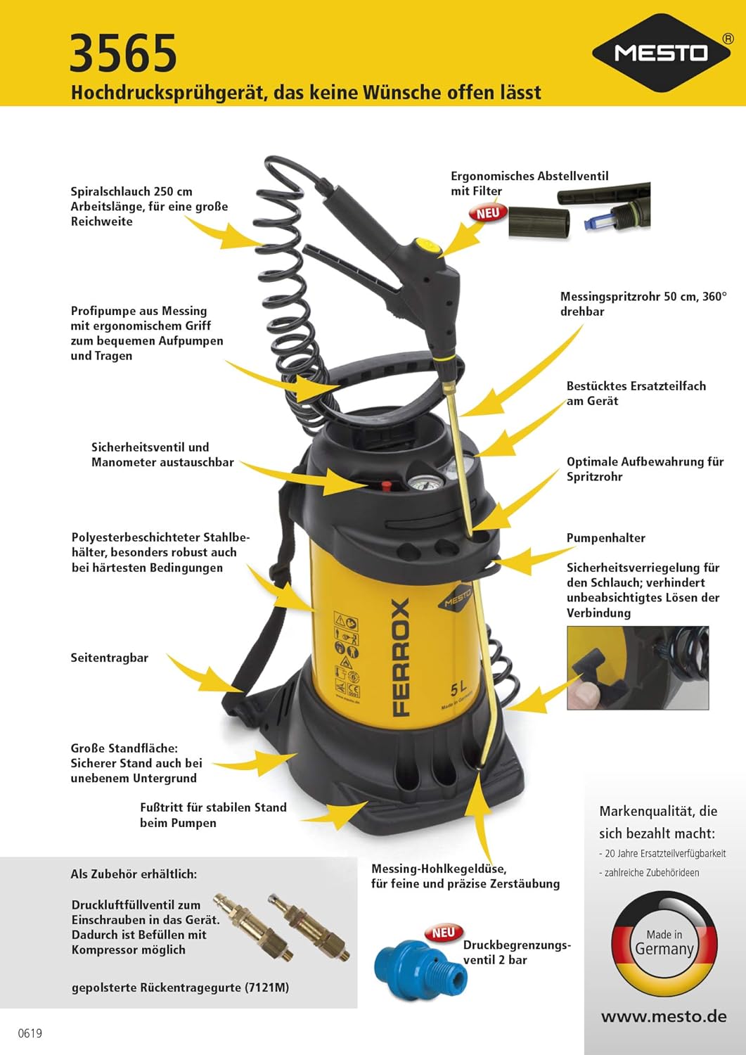 - Hochdrucksprühgerät FERROX 5 l mit polyester-beschichtetem Stahlbehälter.