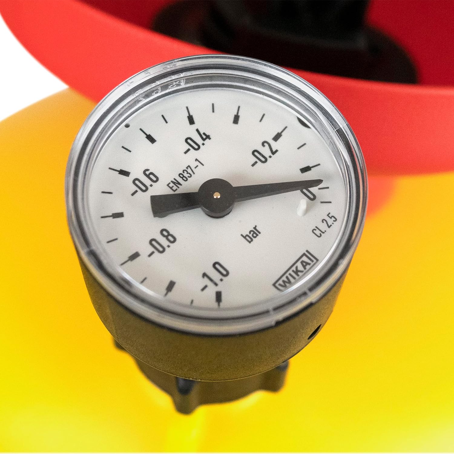 - Das Gerät verfügt über ein Vakuummeter und einer Kunststoffpumpe mit Überzugsrohr.