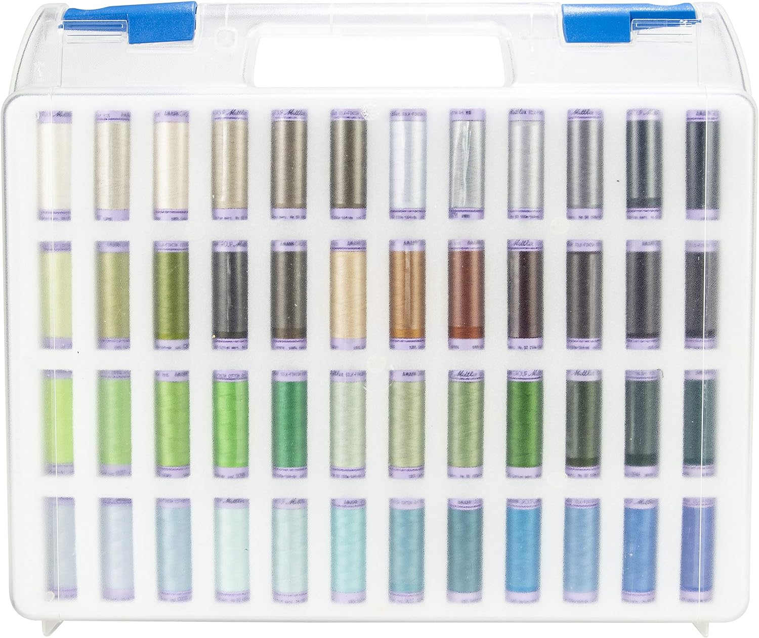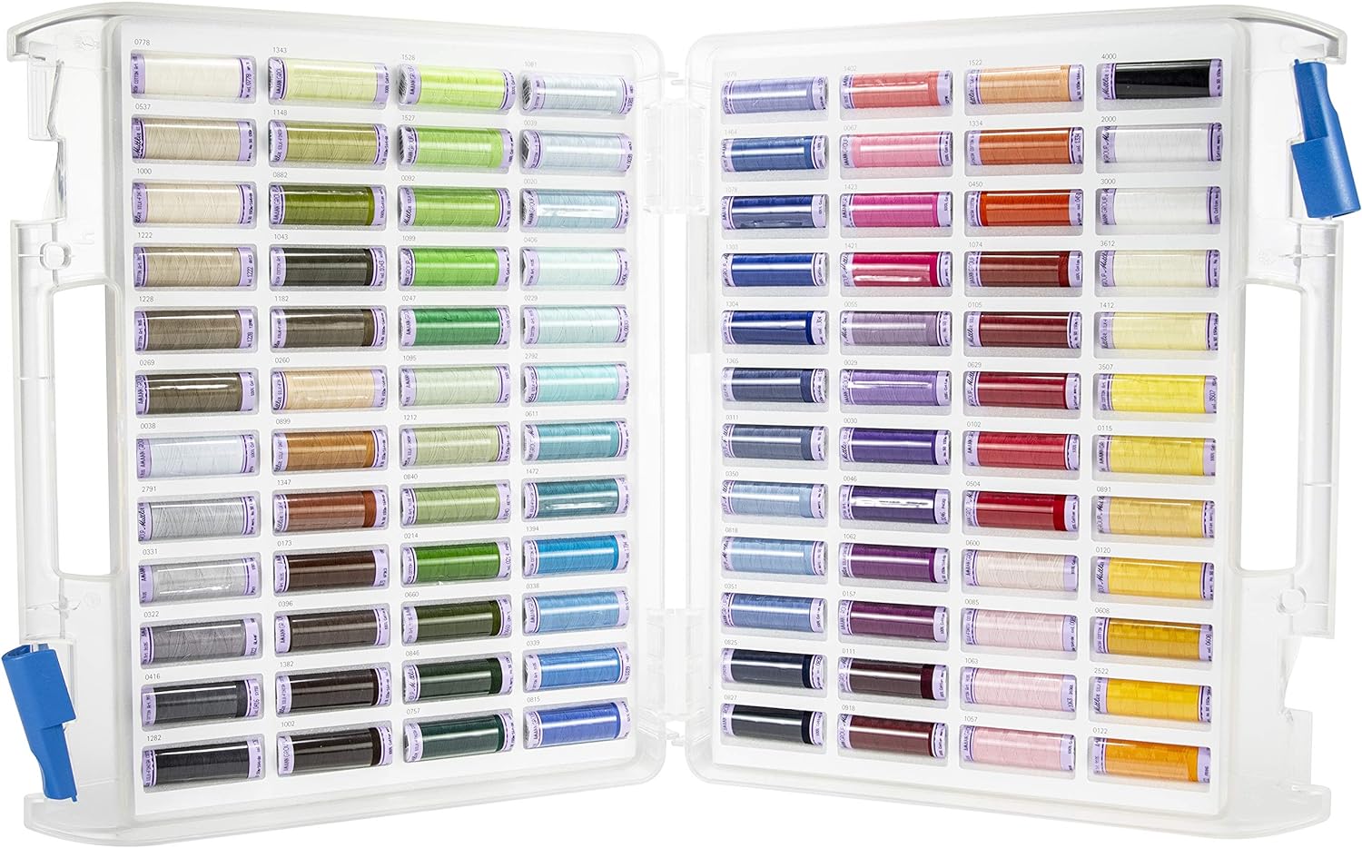• Diese 14x15 15,2 cm Paket enthält 96 Spulen aus 100 % merzerisierter Baumwolle in einer Vielzahl von Farben in einer robusten Kunststoff-Tragetasche