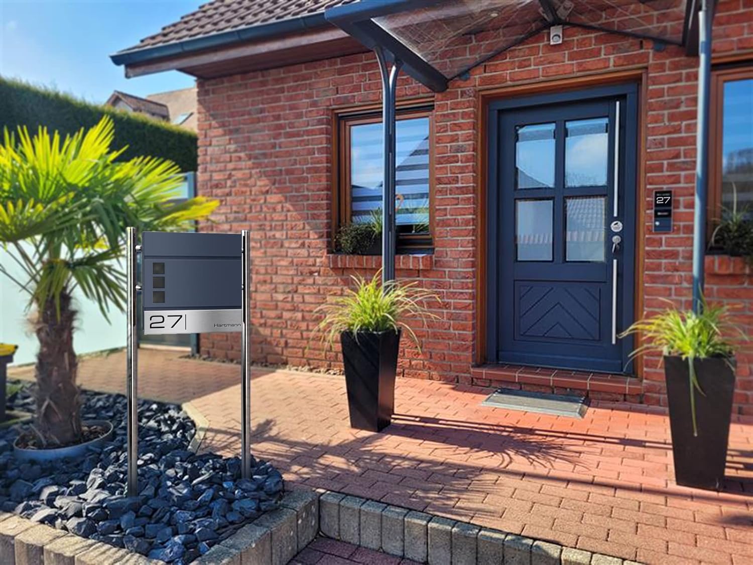 - Die Pulverbeschichtung in Anthrazitgrau matt Feinstruktur (RAL 7016) schützt den Briefkasten zusätzlich vor Umwelteinflüssen - 100% UV- und witterungsbeständig