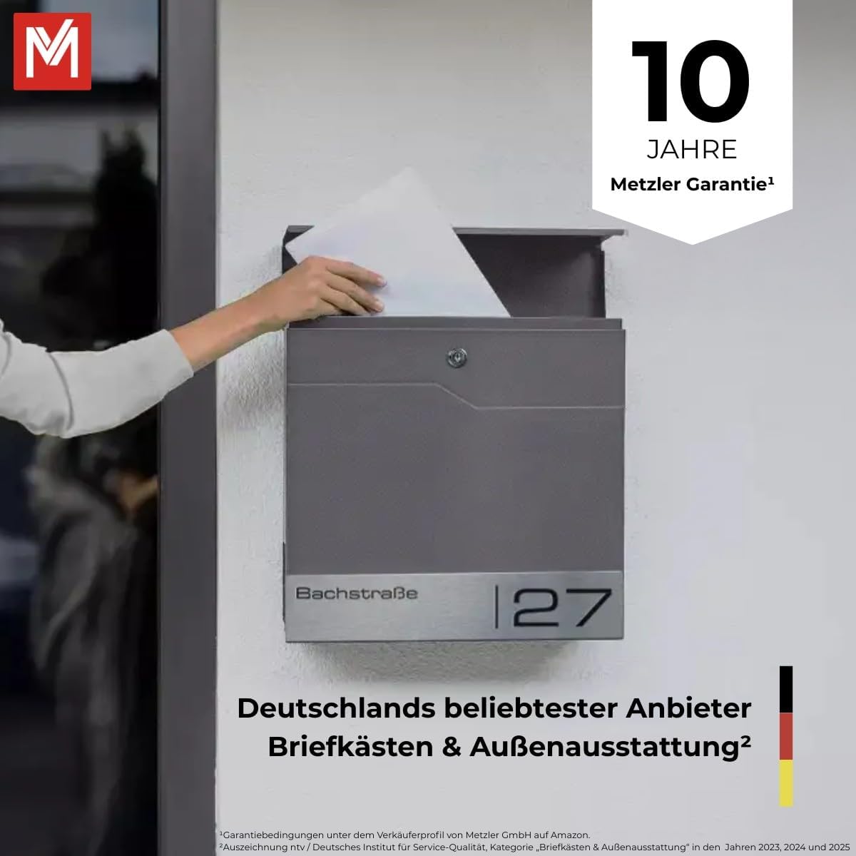 - Design Briefkasten von Metzler - Wandbriefkasten mit Namensschild aus rostfreiem V2A Edelstahl - Der Postkasten wurde von Grund auf von unseren Ingenieuren konstruiert, um Ihnen optimale Funktionalität gepaart mit einem exklusiven Design bieten zu