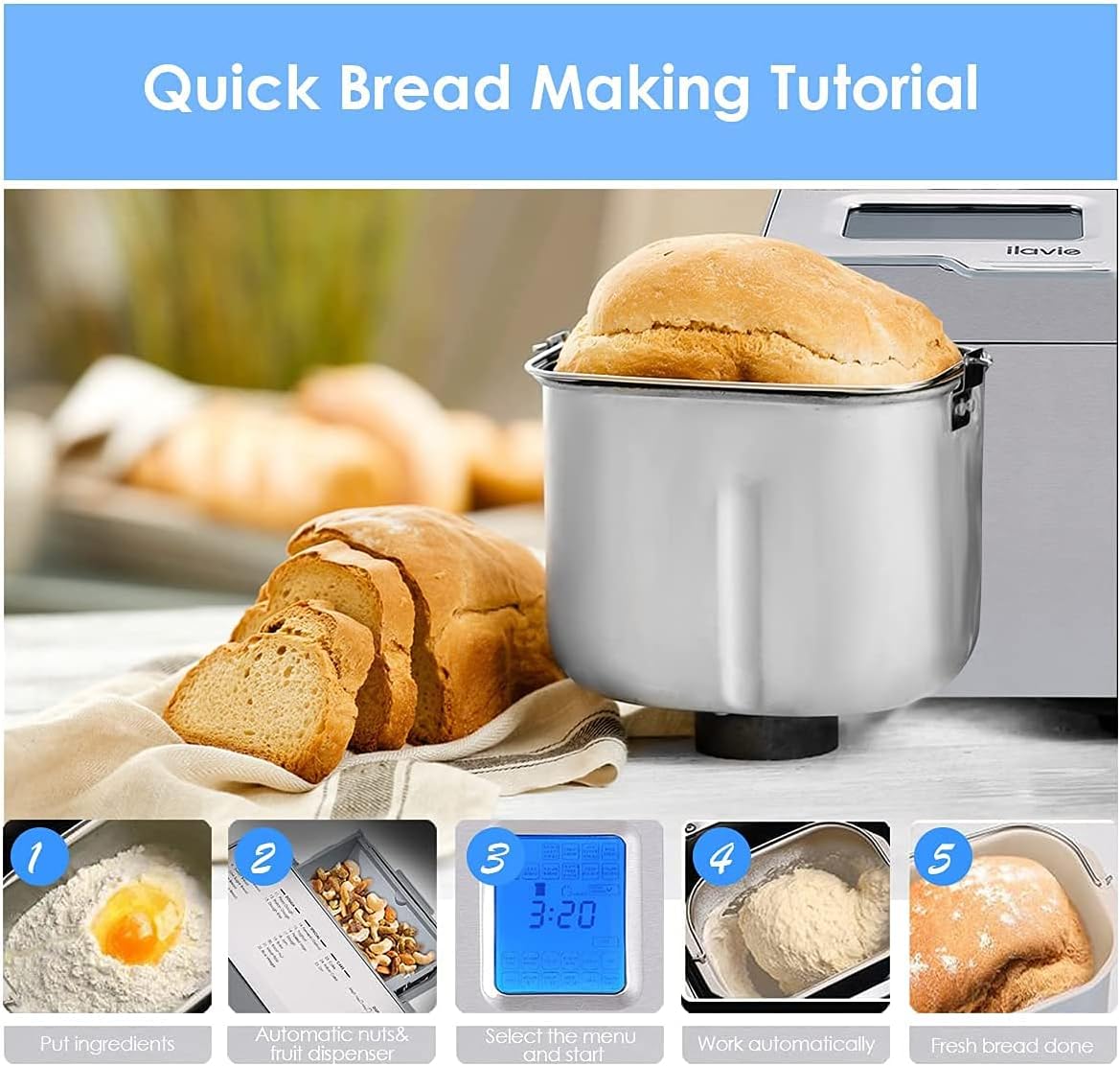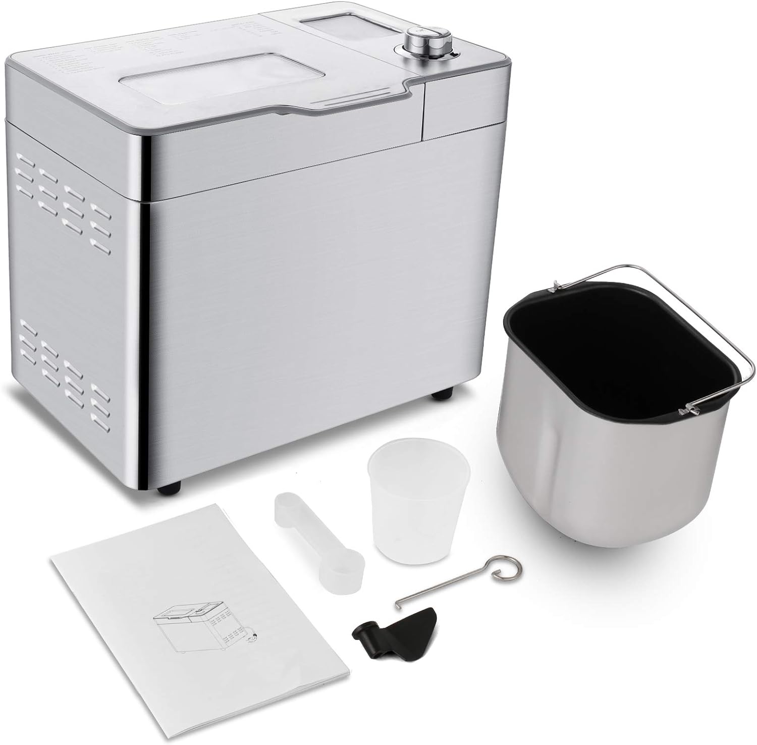 Meykey Brotbackautomat mit 25 Backprogrammen, 13-Stunden-Timer, Edelstahl, 550 W
