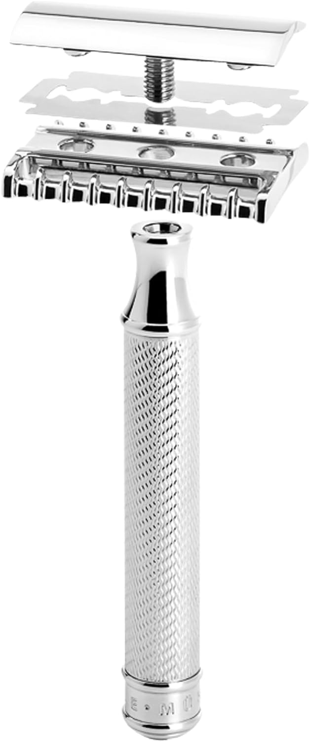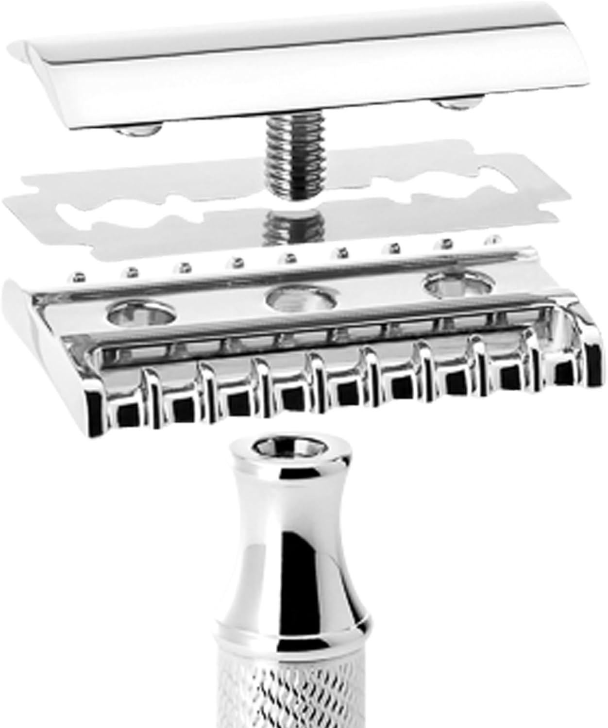 - Pflegehinweis - Der Rasierer kann einfach mit warmem Wasser gereinigt werden. Die klassischen Klingen werden durch Abschrauben des Deckels schnell und einfach gewechselt