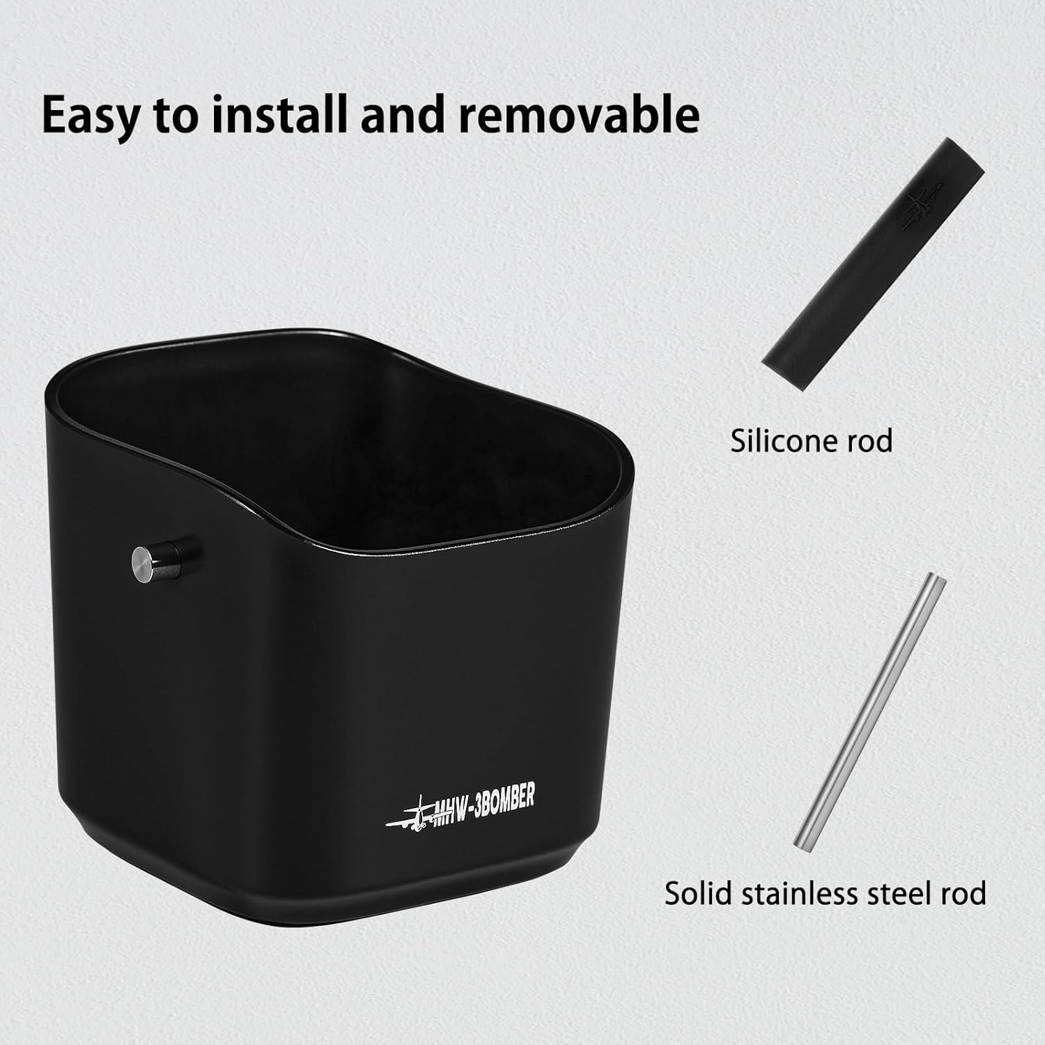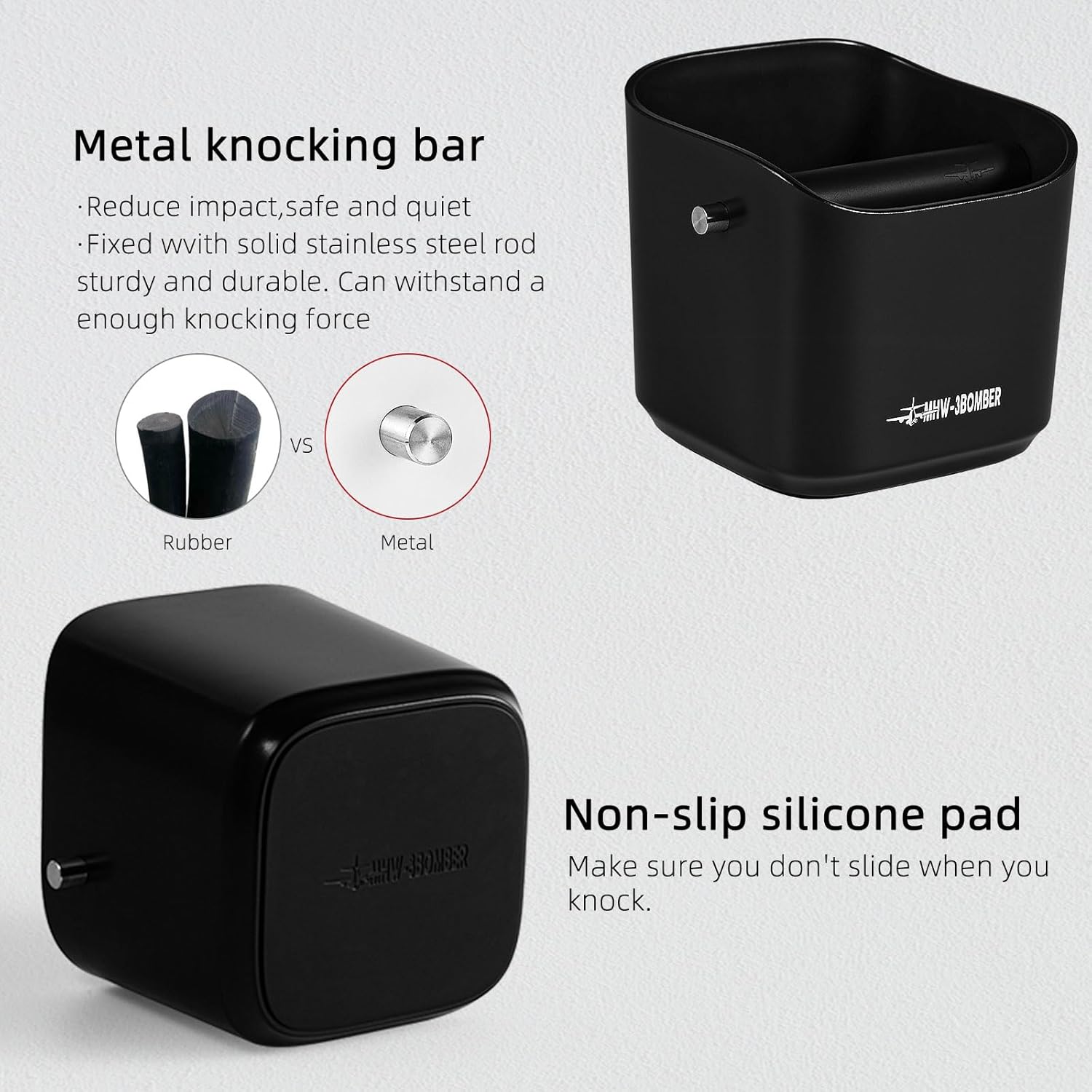 - 【Patent Design】 Unsere Espresso-Klopfbox verfügt über ein schräges Munddesign, das Kaffeereste effektiv blockiert. Die Unterseite ist mit einem Anti-Rutsch-Pad aus Silikon ausgestattet, das Stabilität und Sicherheit beim Klopfen gewährleistet,