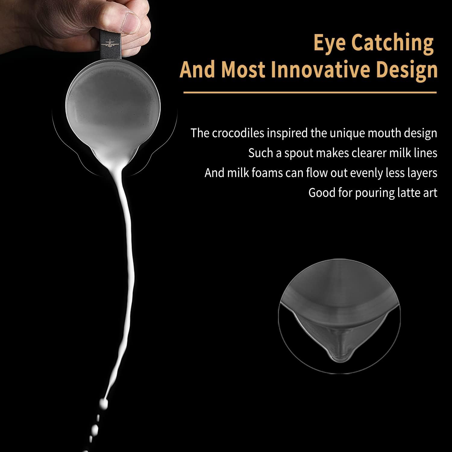 - Einzigartiges Designkonzept: Mit diesem Metallschaumbecher können Sie Cappuccino oder Latte Macchiato perfekt aufschäumen. Das einzigartige Krokodil Ringmunddesign und das doppelt gekrümmte Führungsschlitz sind sehr praktisch.(Patentiertes Aussehen).