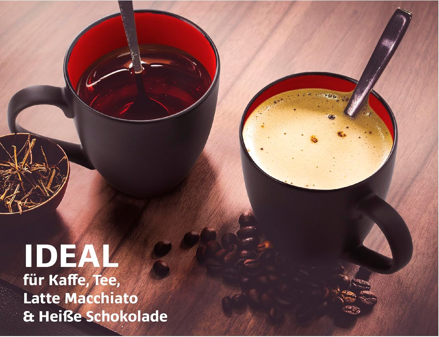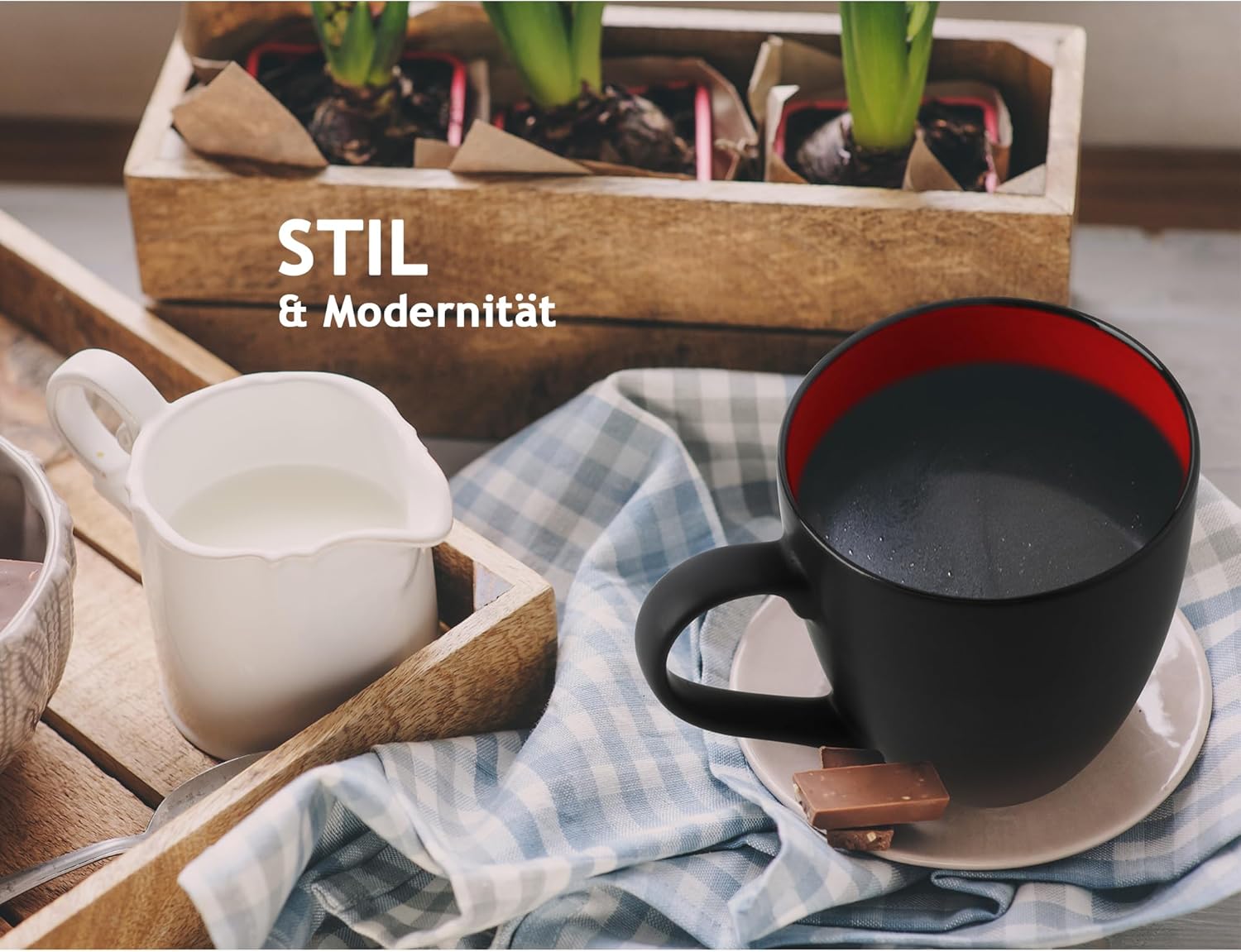 - 𝐇𝐎𝐂𝐇𝗪𝐄𝐑𝐓𝐈𝐆 – Die qualitativ hochwertige Verarbeitung aus Steingut lässt die Farben der Kaffeetassen besonders hervorstechen. Die hohe Beständigkeit von unseren Keramiktassen gegenüber Verschleiss garantiert Ihnen ein