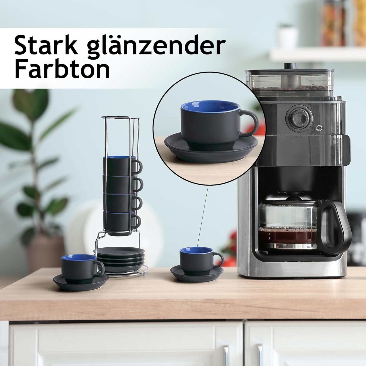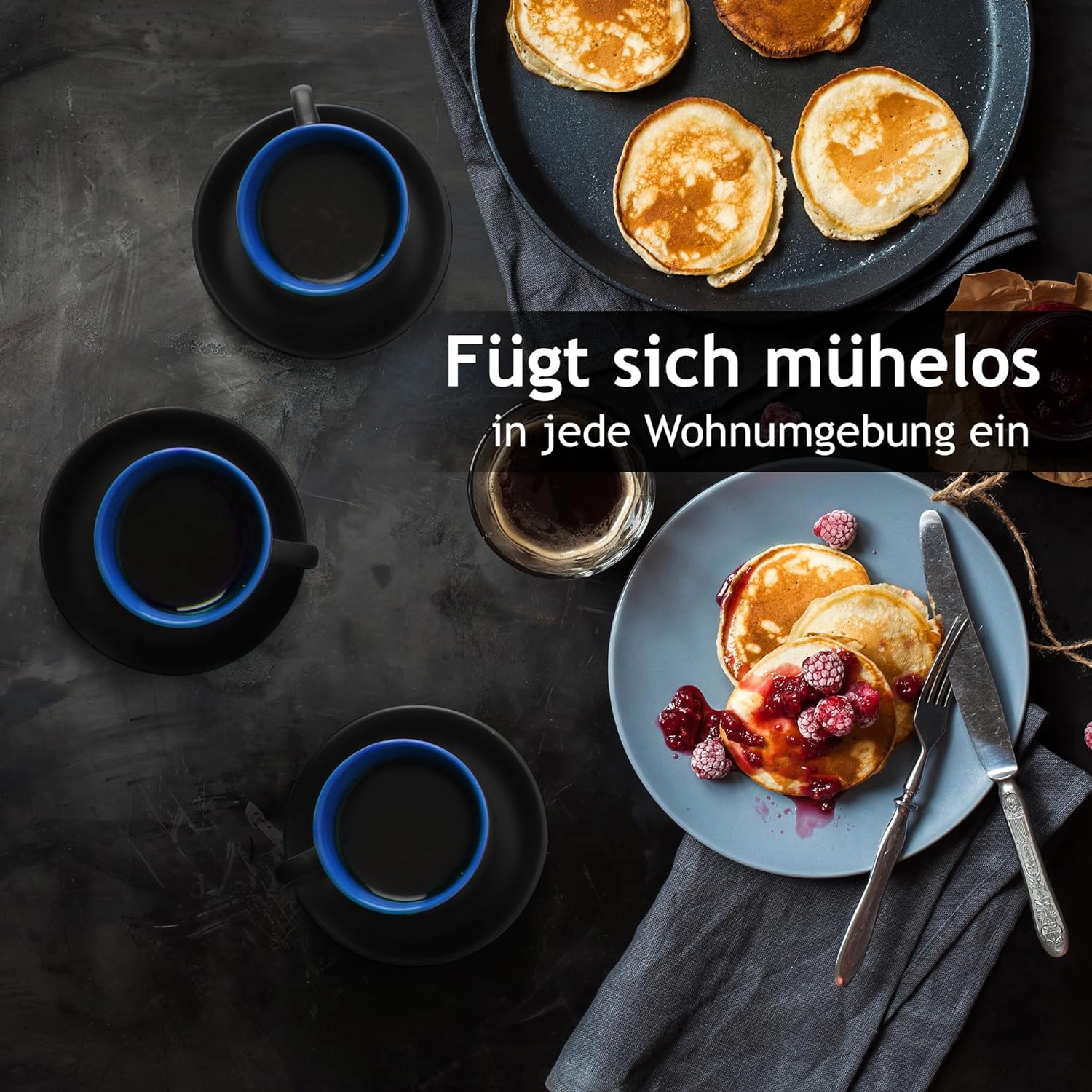 - 𝐄𝐈𝐍 𝐇𝐈𝐍𝐆𝐔𝐂𝐊𝐄𝐑 – Das MIAMIO Espresso Set macht jeden Morgen zu einem besonderem. Das moderne, in einem matt- schwarz gehaltene Äussere gibt den Tassen einen edlen und hochwertigen Look. Mit ihrem glänzend-kräftigen