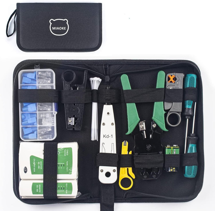 - 📌🧰【NETZWERKWARTUNGSWERKZEUGE】 MIAOKE Netzwerkwartungs-Toolkit für den wesentlichen Bedarf, einschliesslich 3-in-1-RJ-45-RJ12-RJ11-Crimperzange, Netzwerktester, 1* 9V Batterie, 10-teiliger Kristalldurchgangsanschluss, 10-teiliger Steckverbinder