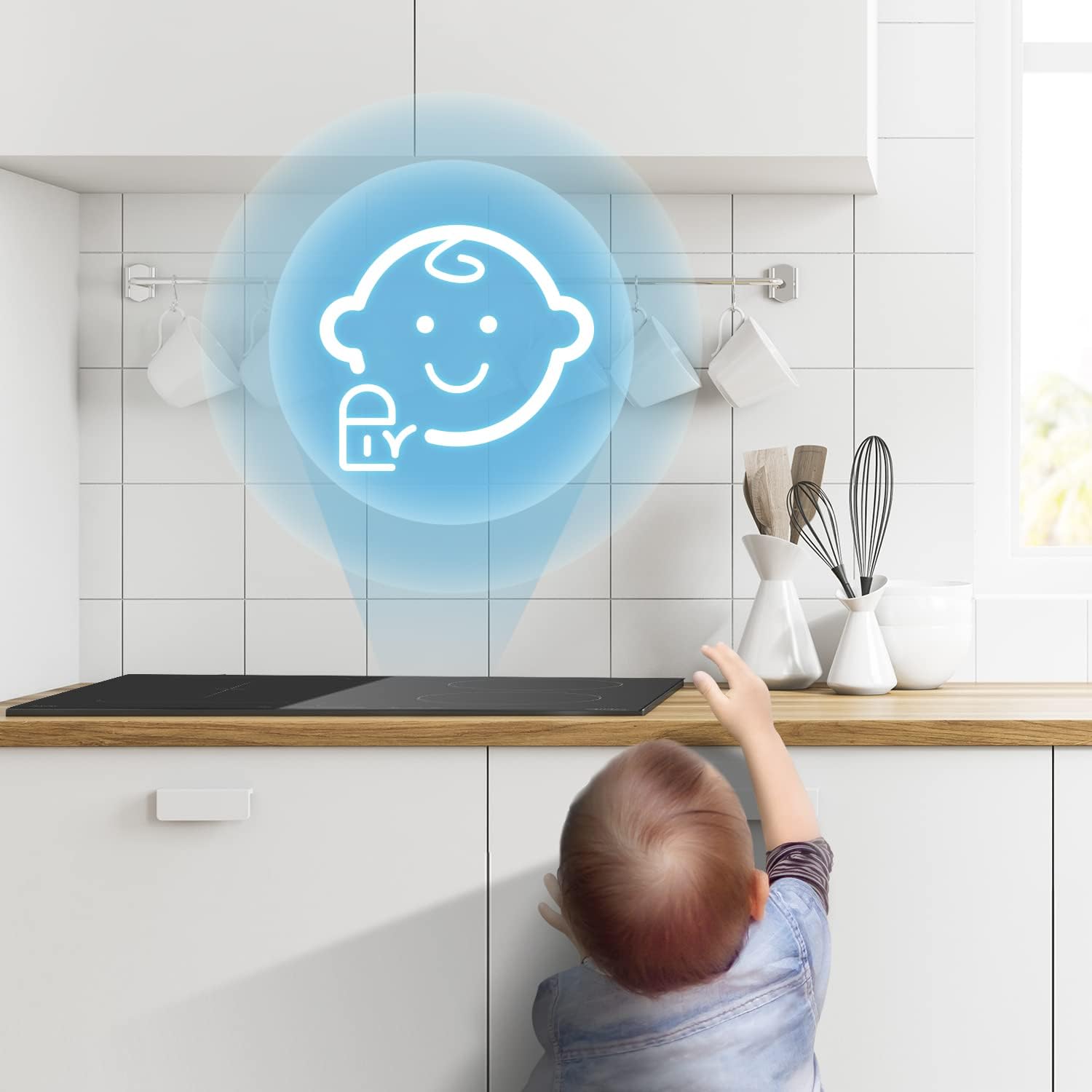 - 【Slider Touch Control】 Wählen Sie durch Berühren die gewünschte Kochzone und stellen Sie einfach die gewünschte Leistungsstufe ein, es stehen 9 Stufen zur Auswahl
