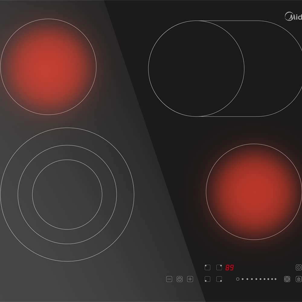 - 【Bequem】Restwärmeanzeige für jede Kochzone und automatische Erkennung der Töpfe