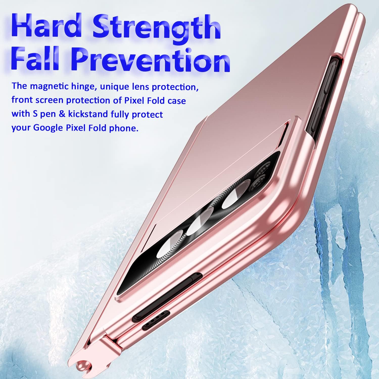 - ✏[mit Pen Halter und Stylus] Diese Hülle für Google Pixel Fold verfügt über einen integrierten Stylus-Halter und wird mit einem kostenlosen Stylus geliefert. Sie können den Stift bequem überallhin mitnehmen und verwenden, ohne sich Gedanken über