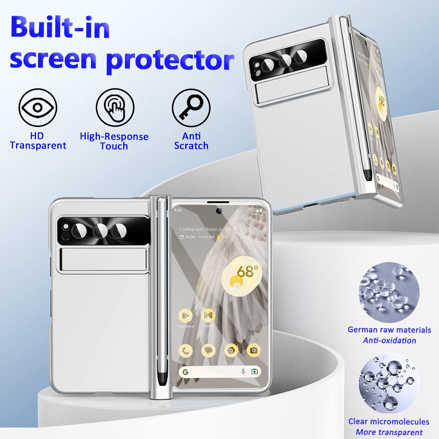 • ✨[Effektiver Schutz mit Elegantem Aussehen] Dieses Google Pixel Fold Handyhülle mit Displayschutz besteht aus robustem PC-Material und HD-Glasfolie und bietet ein elegantes Aussehen und komfortablen Halt, während es gleichzeitig vor Kratzern und