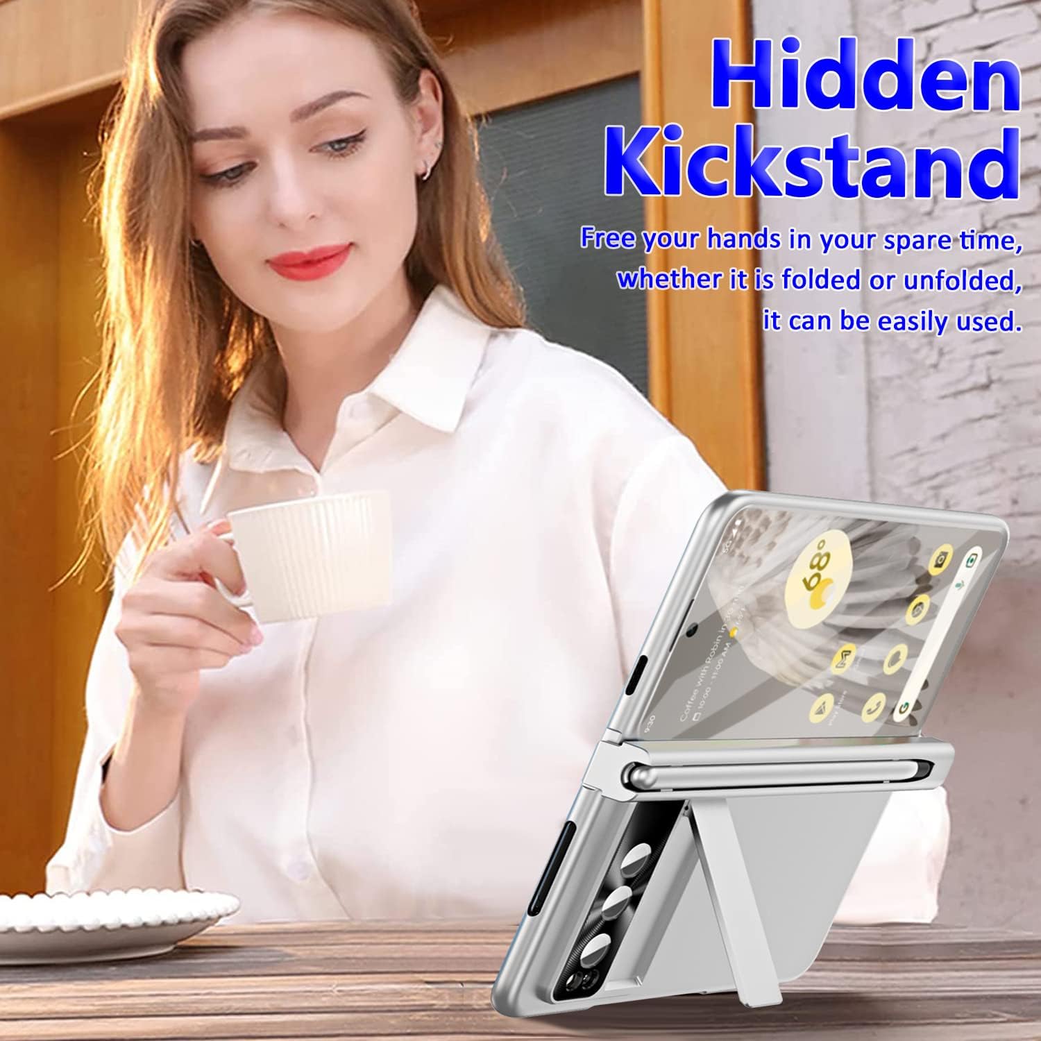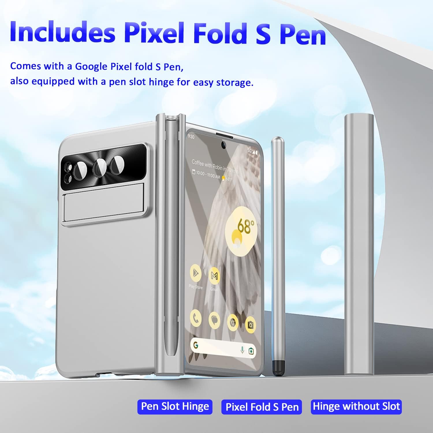Miimall Handyhülle Kompatibel mit Google Pixel Fold Hülle mit Ständer + Stift, Robust PC Pixel Fold