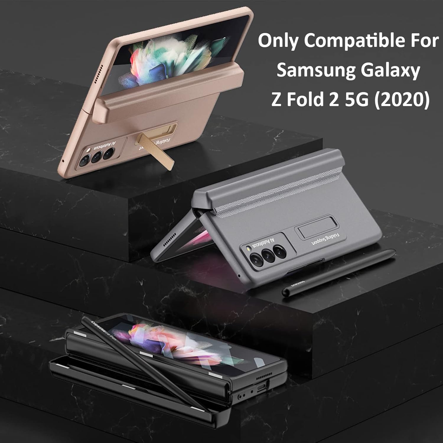 Miimall Handyhülle Kompatibel mit Samsung Galaxy Z Fold 2 Hülle mit S Pen Halter + Stift, PC Schutzh