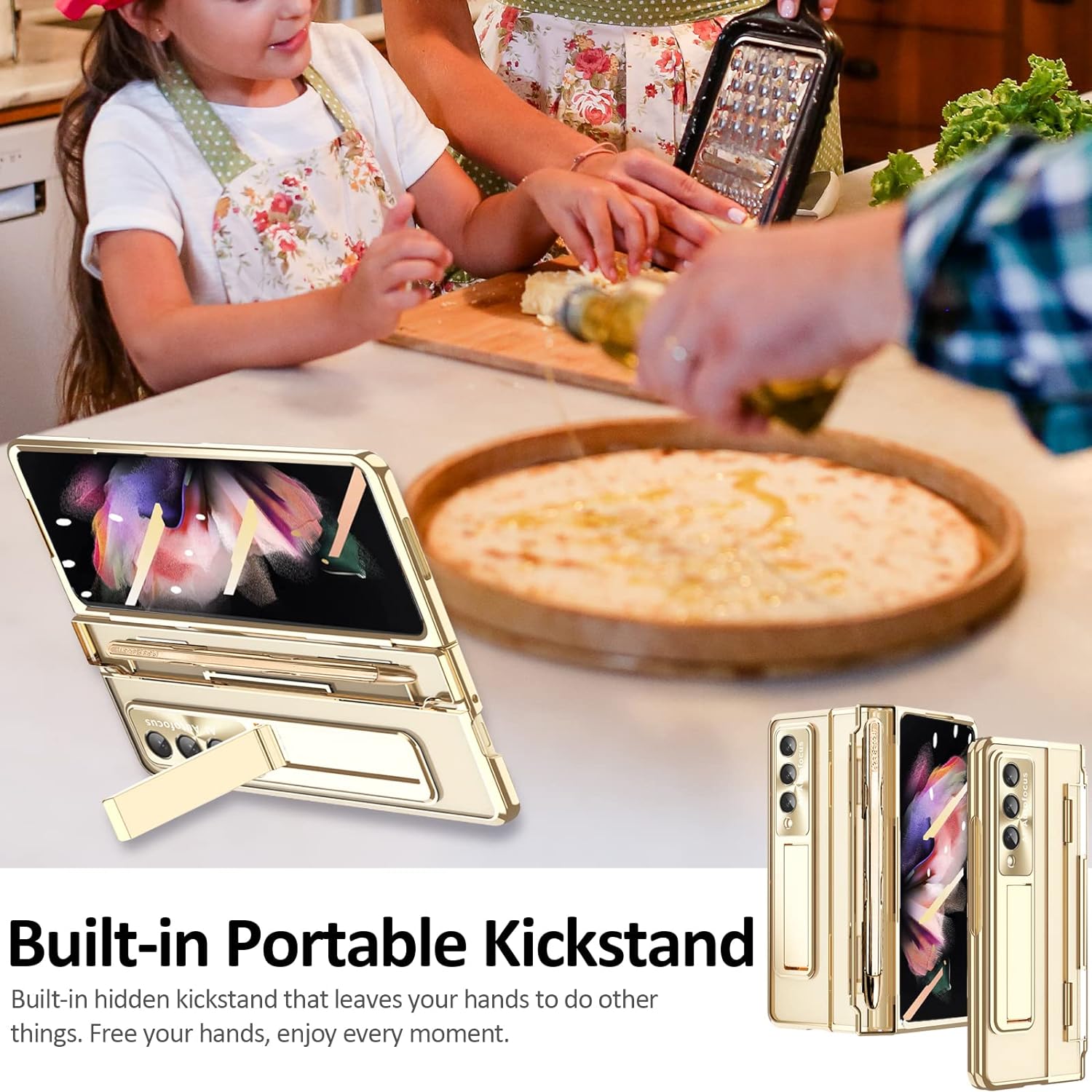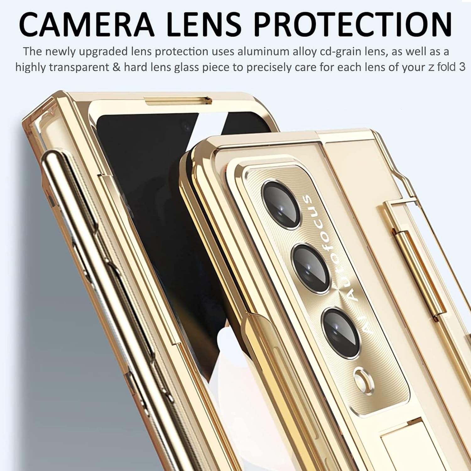 - [Effektiver Rundomschutz] Dieses aus hochwertigem PC-Material gefertigte Fold 3 Hülle mit S pen halter verfügt über einen äusseren Displayschutzfolie und ein Metallteil für die Linse, um Kratzer zu vermeiden, sowie mit einem Kantenschutz und einem