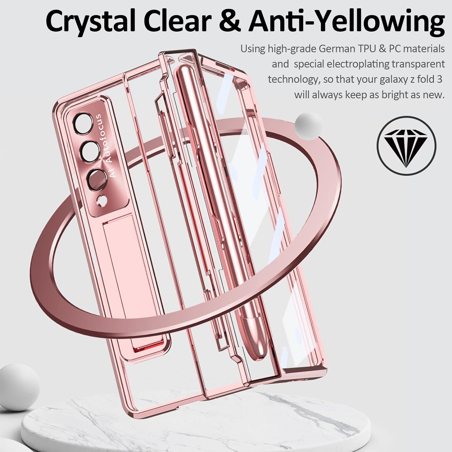 - [Effektiver Rundomschutz] Dieses aus hochwertigem PC-Material gefertigte Fold 3 Hülle mit S pen halter verfügt über einen äusseren Displayschutzfolie und ein Metallteil für die Linse, um Kratzer zu vermeiden, sowie mit einem Kantenschutz und einem