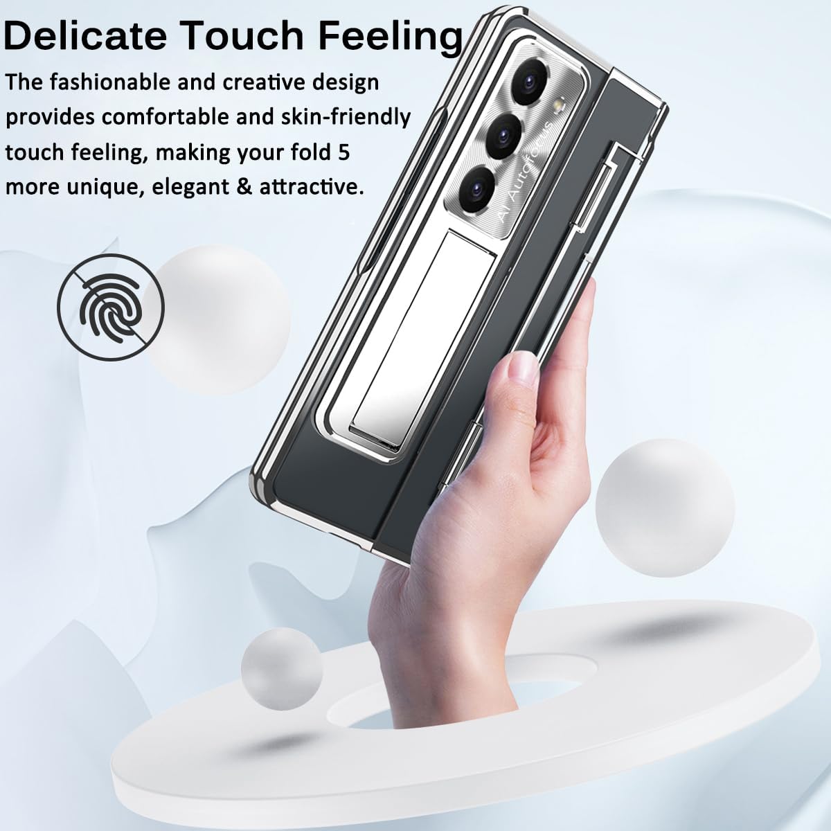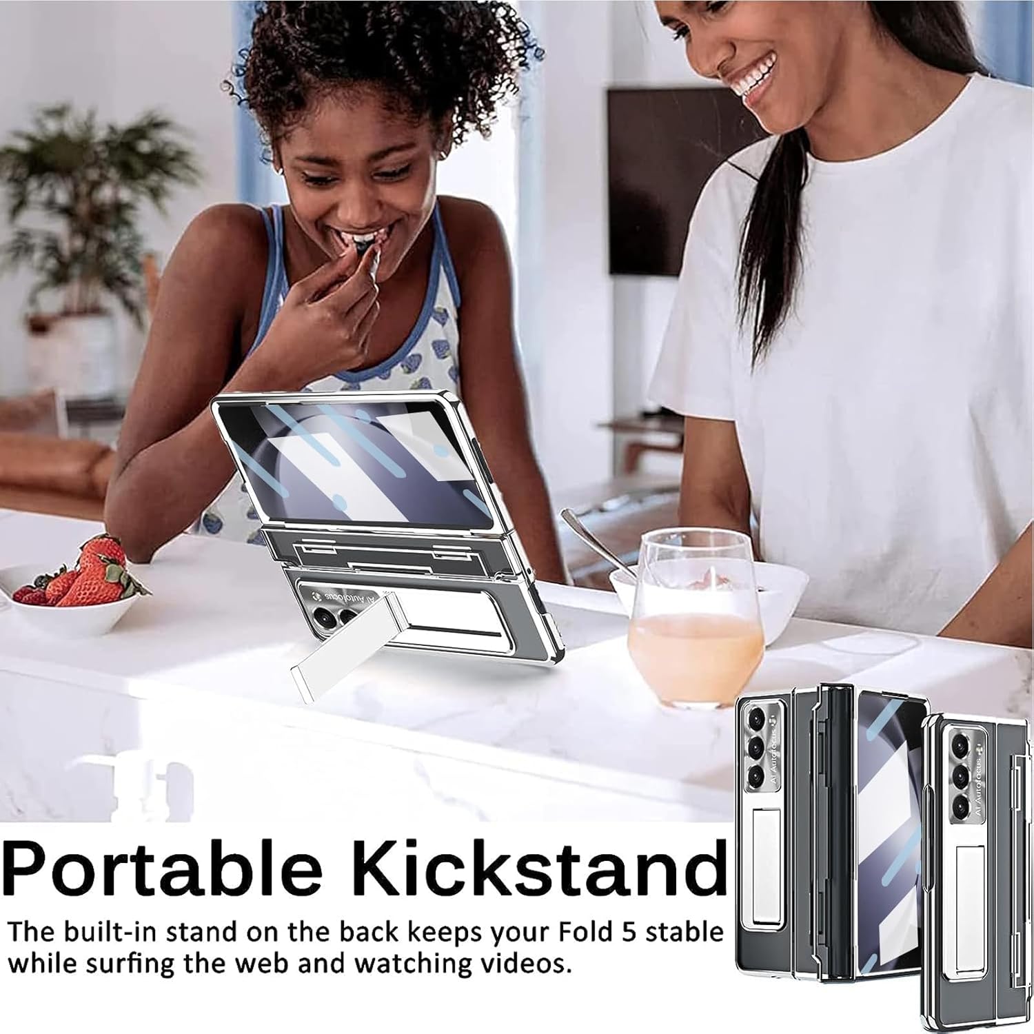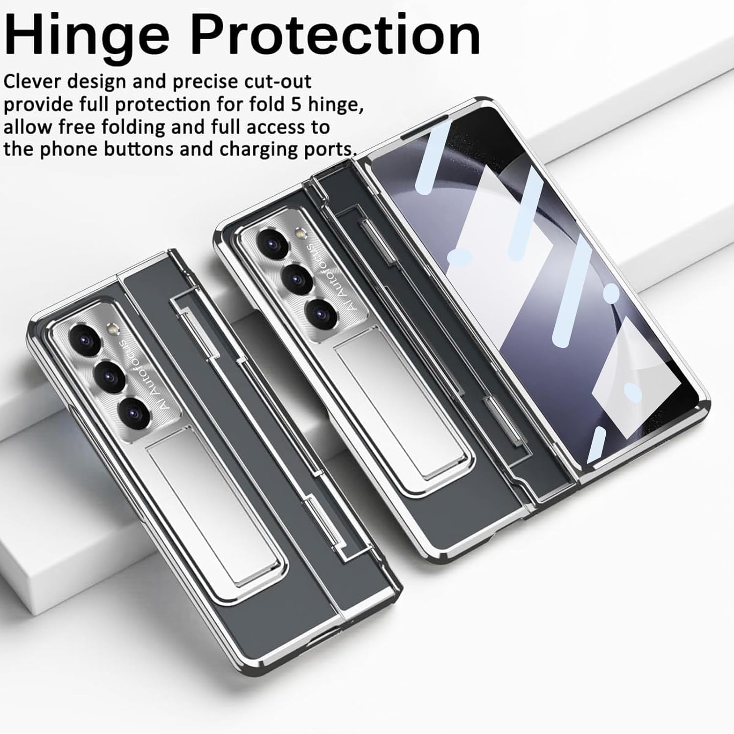• [Hinged Cover+Ständer] Die Galaxy Fold 5 hülle hat einen Scharnier Cover. Clevere Konstruktion und Präzise Aussparung ermöglicht freies Falten und vollen Zugriff auf die Telefontasten und Ladeanschlüsse. Der eingebaute Ständer der Rückseite hält