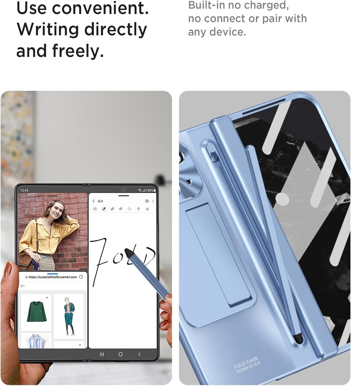 • ✨ [Stift & Eingebauter Pen Slot] Diese hintere Abdeckung der Pixel Fold 2 Hülle kommt mit einem S Pen und Eingebauter Pen Slot. Drücken Sie einfach die Taste, um den Stift auszuwerfen. Silikonspitze kratzt den Bildschirm nicht. Es ist