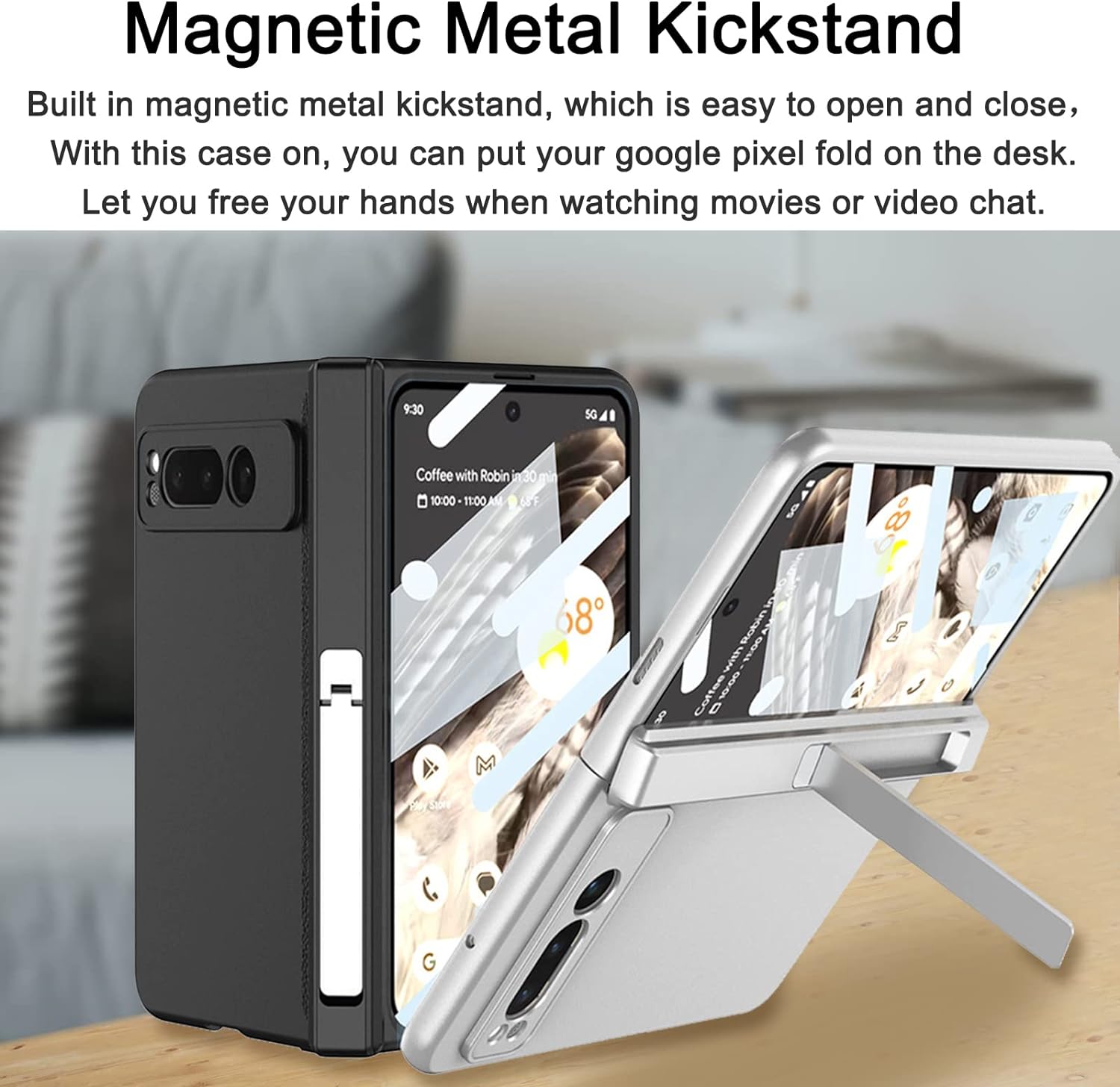 • [Tragbarer Ständer] Es gibt einen eingebauten metall Ständer am Scharnier der Google Pixel Fold hülle, der Ihr Telefon stabil platzieren kann. Es kann Ihre Hände befreien, während Sie Videos ansehen und im Internet surfen. Tragbarer und praktisch.