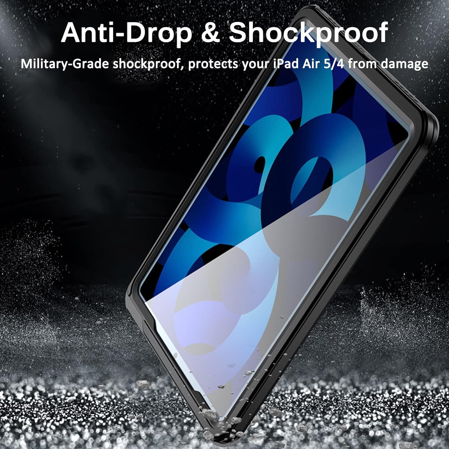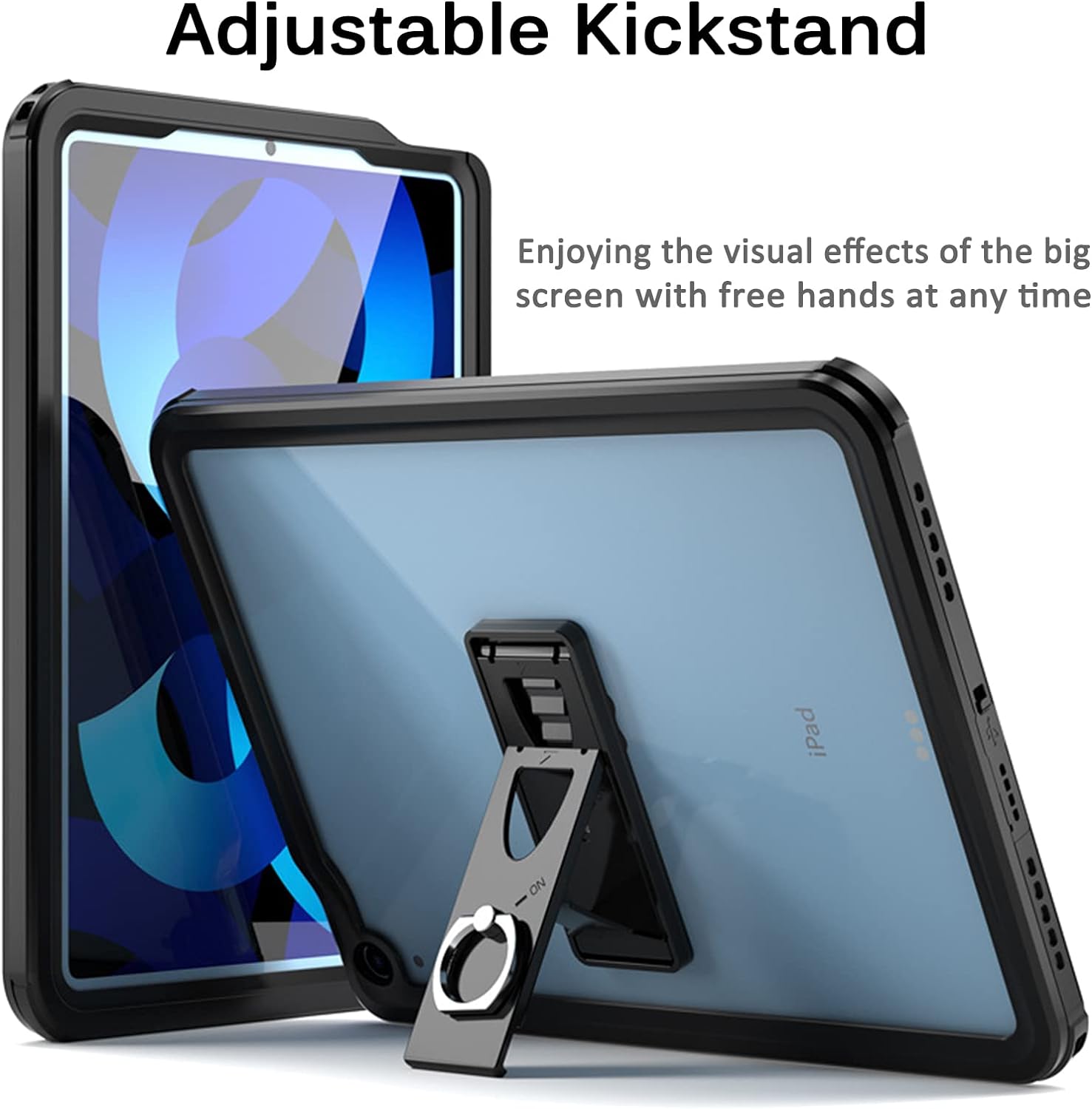- [Einstellbarer Ständer] Diese iPad air 5 10.9 2022 wasserdichte Hülle wird mit einem tragbaren Ständer geliefert, der Ihr iPad stabil unterstützt, so dass es einfach ist, Videos zu lesen und anzusehen, und Sie können die Höhe nach Bedarf anpassen.