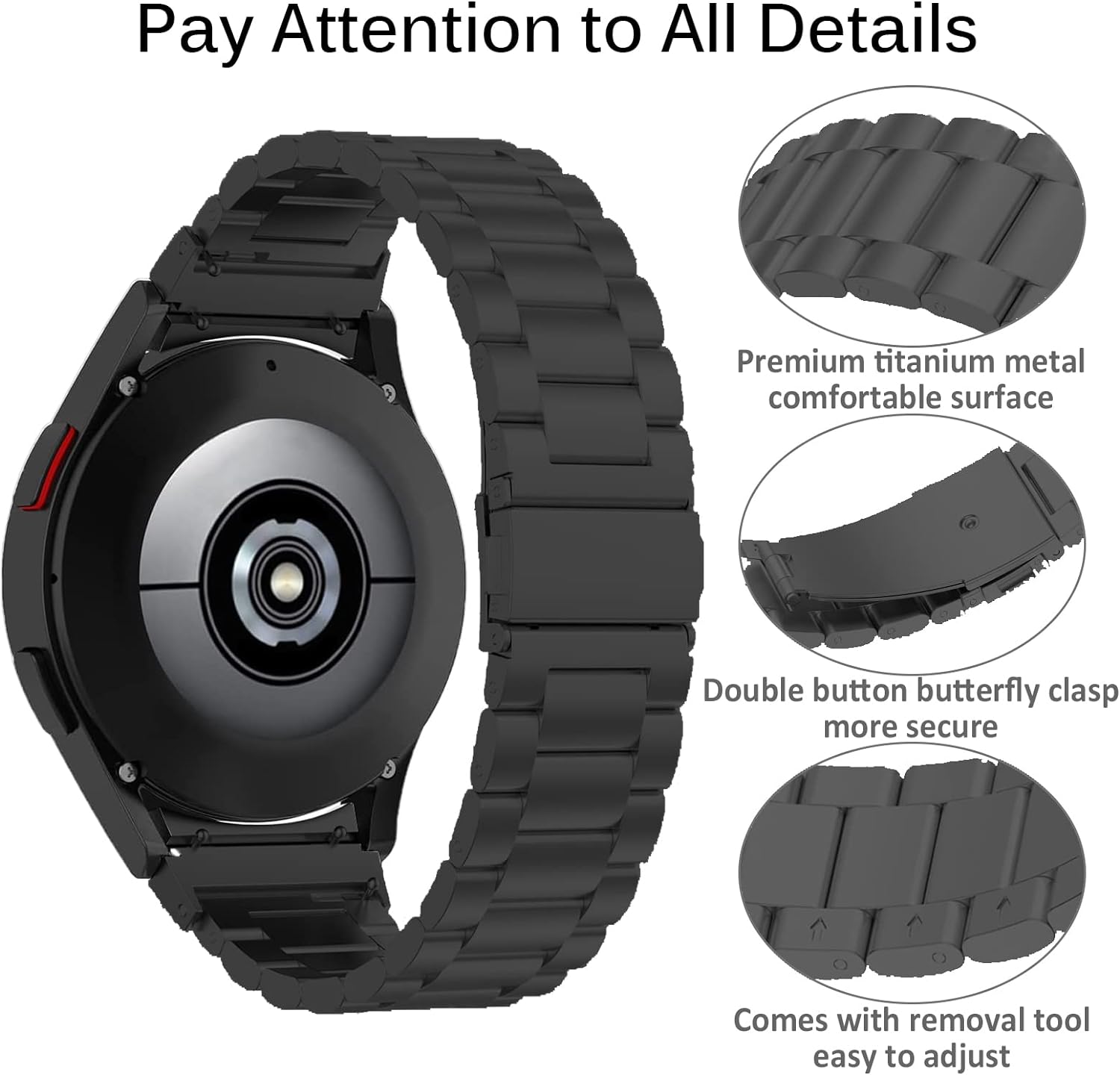 - [Grosse Kompatibilität] Dies Titanstahl Metall Uhrenarmband ist kompatibel mit Samsung Galaxy Watch 3 41mm/Watch 4 40mm 44mm/Watch 4 Classic 42mm 46mm/Watch 5 40mm 44mm/Watch 5 Pro 45mm/Watch 6 40mm 44mm/Watch 6 Classic 43mm 47mm. Stark und