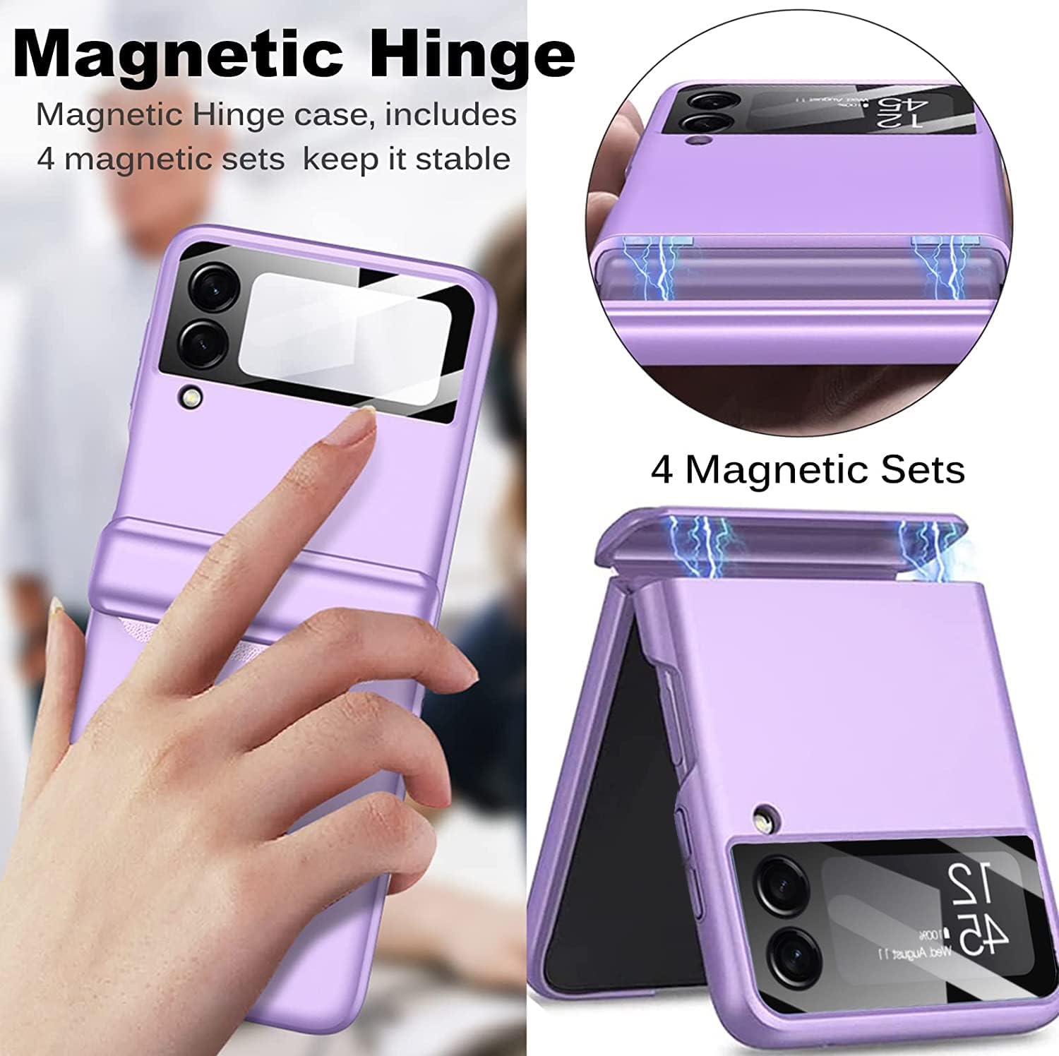 - [Magnetischer Scharnierschutz] Die Galaxy Z Flip 4 5g Hülle bietet Scharnierschutz mit vier eingebauten Magneten, die sich gegenseitig anziehen, um sicherzustellen, dass das Scharnier fest geschlossen ist. Das Scharnier lässt sich flexibel einklappen.
