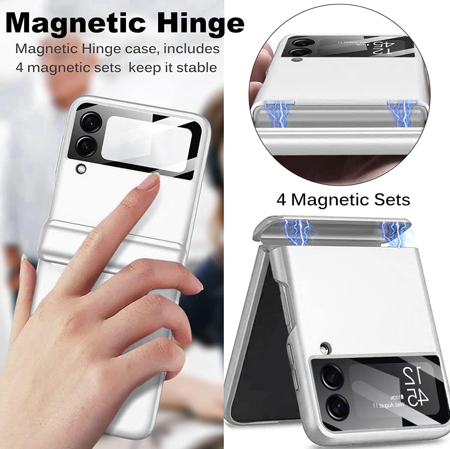- [Magnetischer Scharnierschutz] Die Galaxy Z Flip 4 5g Hülle bietet Scharnierschutz mit vier eingebauten Magneten, die sich gegenseitig anziehen, um sicherzustellen, dass das Scharnier fest geschlossen ist. Das Scharnier lässt sich flexibel einklappen.