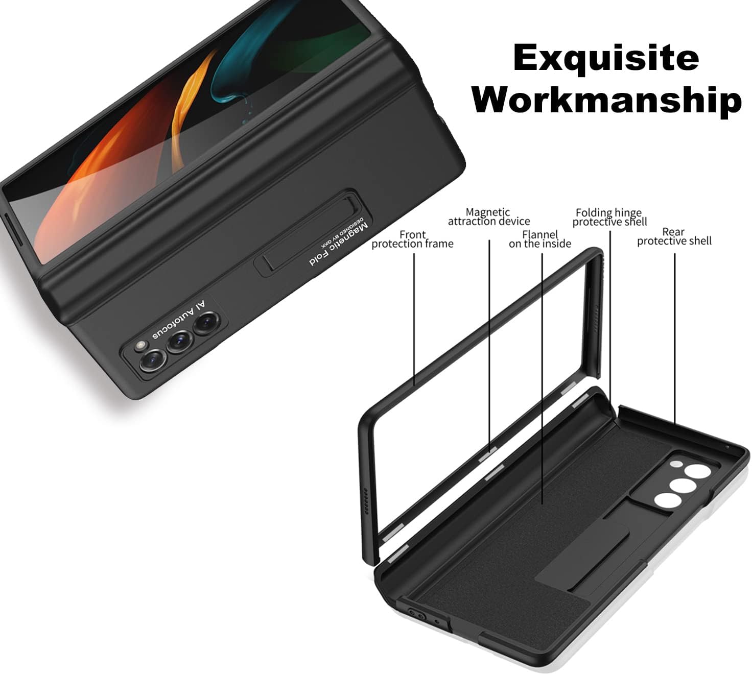 - - 【Kompatibel】 Unsere Scharnierschutzhülle passt perfekt für das Samsung Galaxy Z Fold 2 5G 2020. Das brandneue Upgrade-Design, der Scharnierschutz + die Standfunktion erleichtern die Verwendung Ihres Galaxy Z Fold 2 im täglichen Leben und bieten