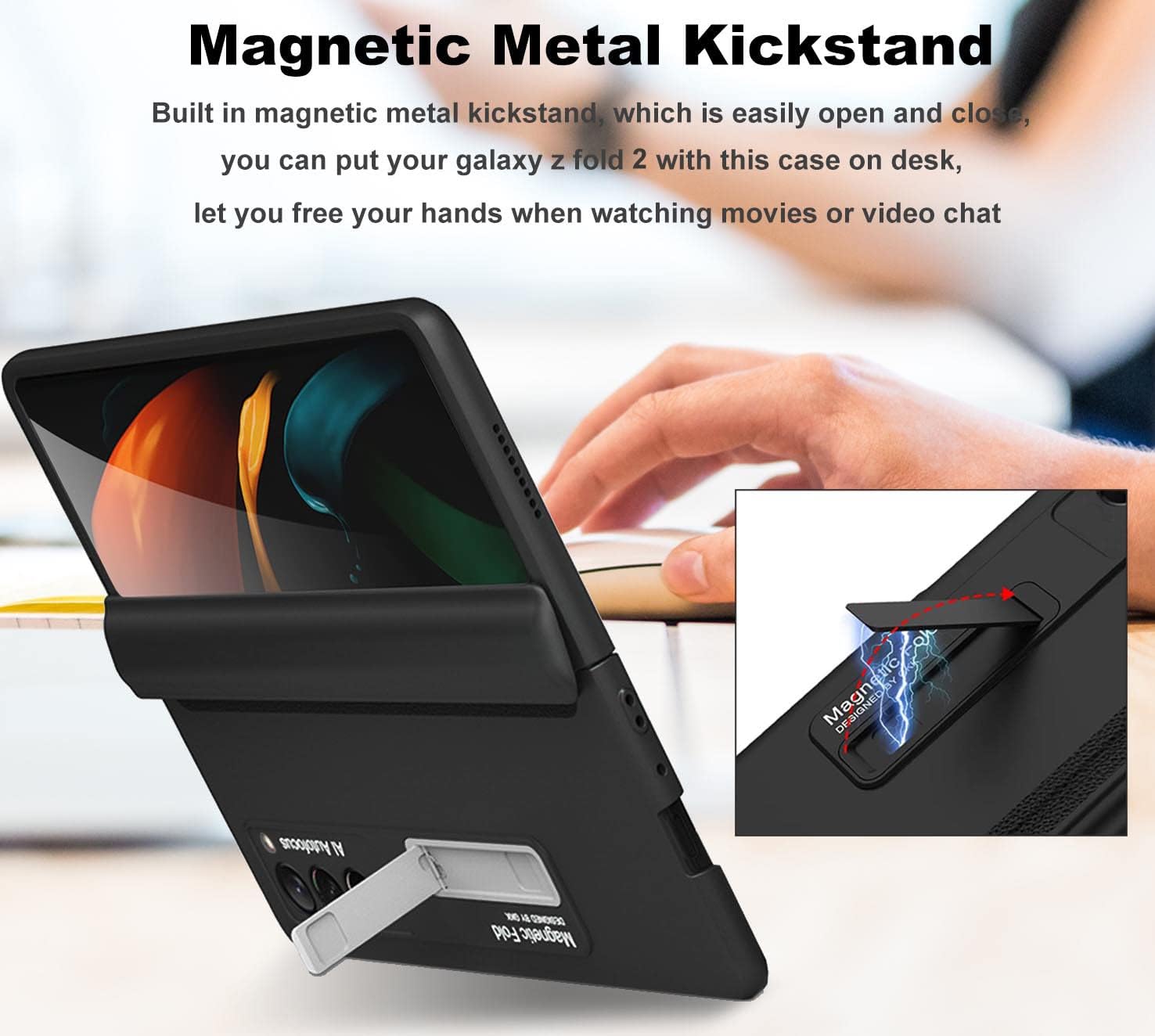 - - 【Magnetic Hinge Protection Design】: Unsere Samsung Galaxy Z Fold 2 Hülle mit Scharnierabdeckung, Sätze mit sechs magnetischen, starken Magneten machen es stabil und fallen nicht leicht herunter und bieten vollen Schutz für Ihr Galaxy Z Fold 2;