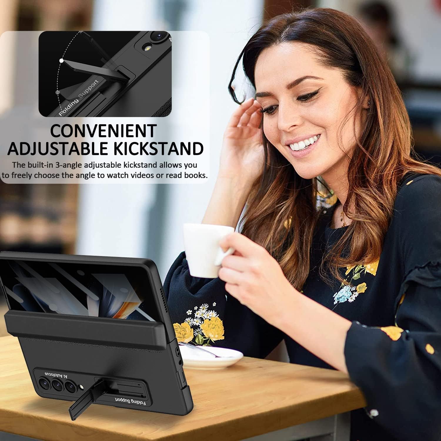 • [Eingebauter Ständer] Die hintere Abdeckung der Galaxy Z Fold 4 Handyhülle verfügt über einen eingebauter ständer, um Ihr Telefon stabil zu halten, während Sie im Internet surfen und Videos ansehen.
