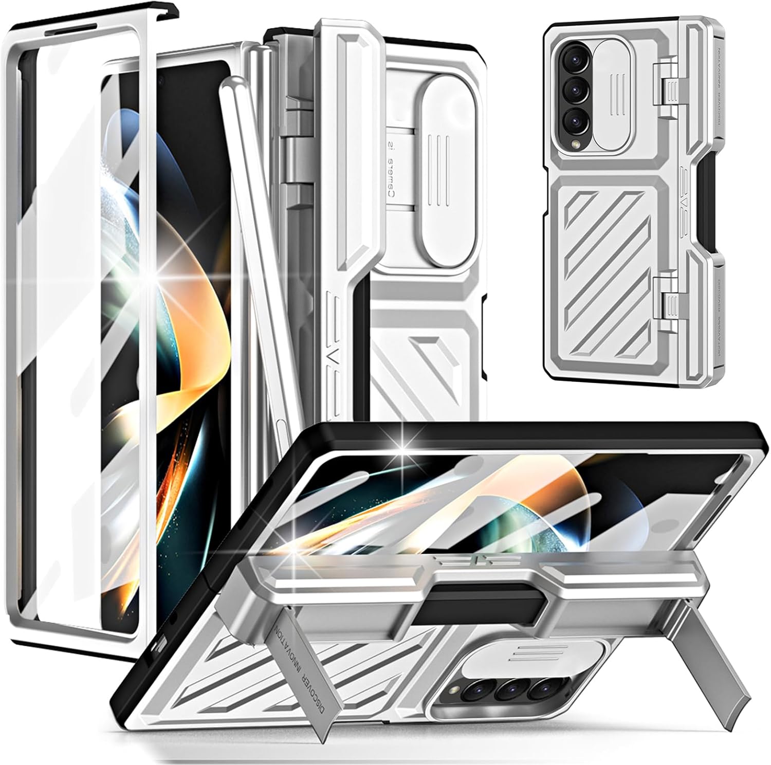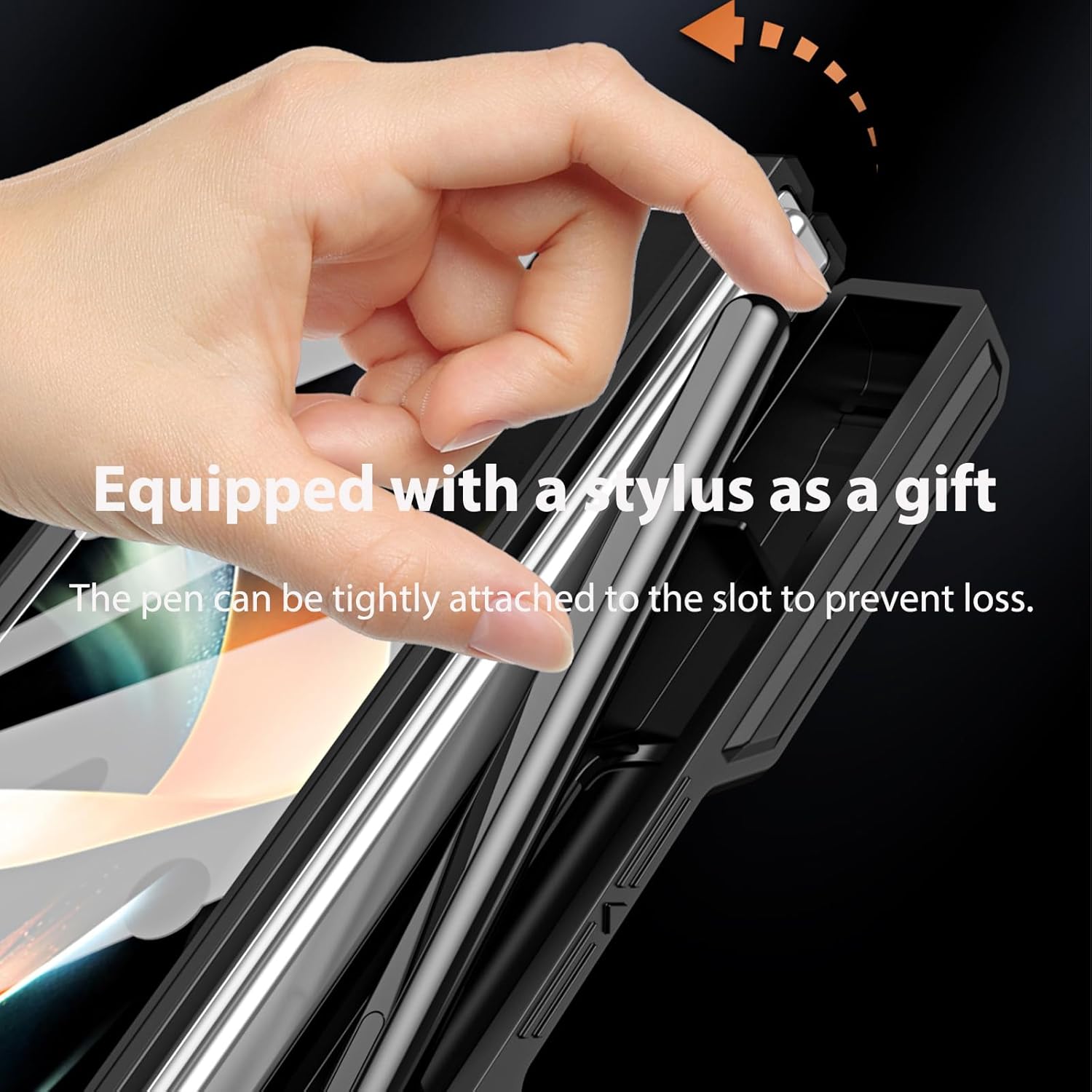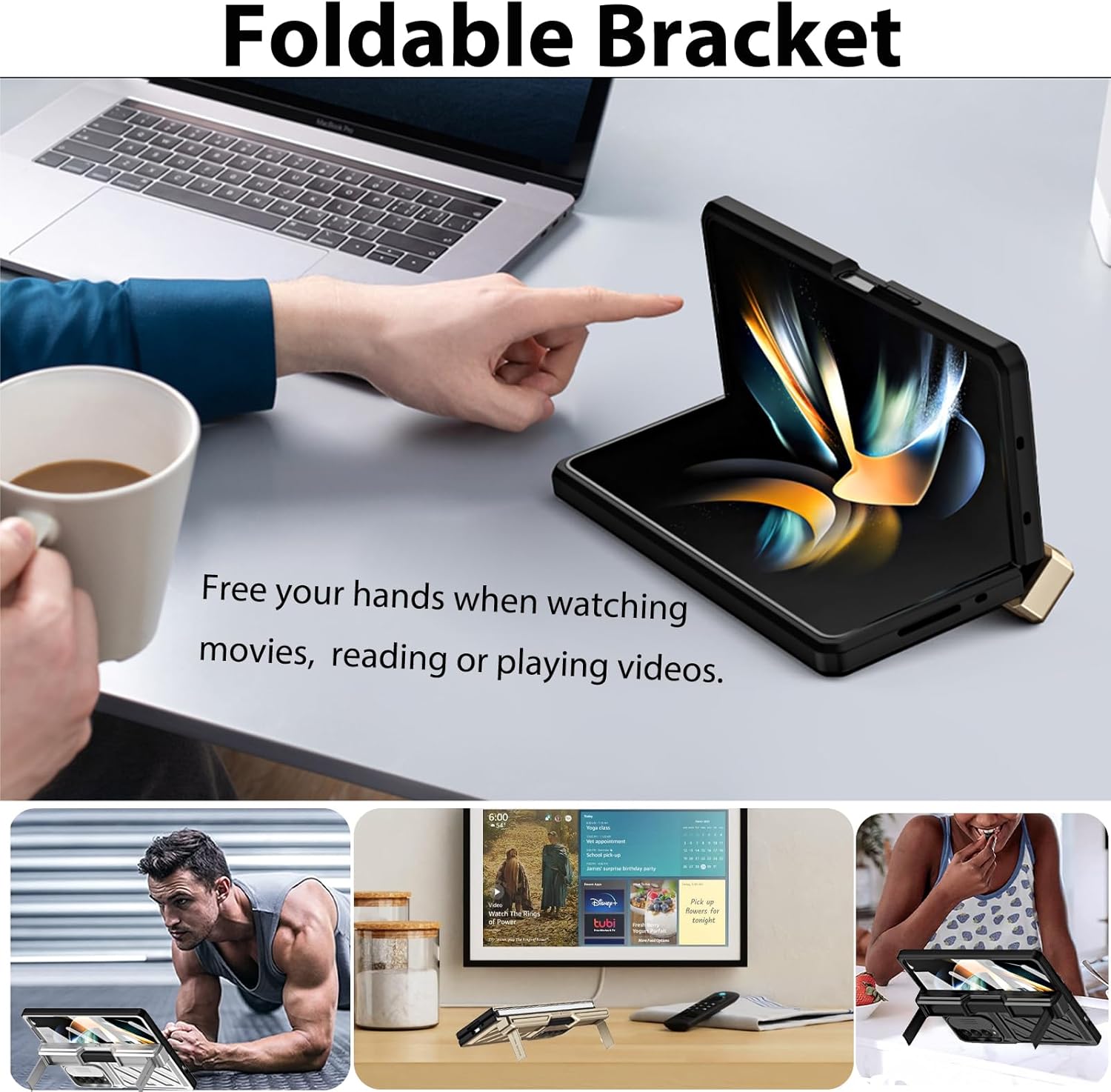 - [Scharnierschutz+Dual Ständer] Super starker Scharnierschutz, stossfest, stürzbeständig und kollisionsbeständig und bietet militärischen Schutz für Ihr Samsung Fold 4 Telefon. Die doppelten Ständer am Scharnier bieten stabilere Unterstützung für